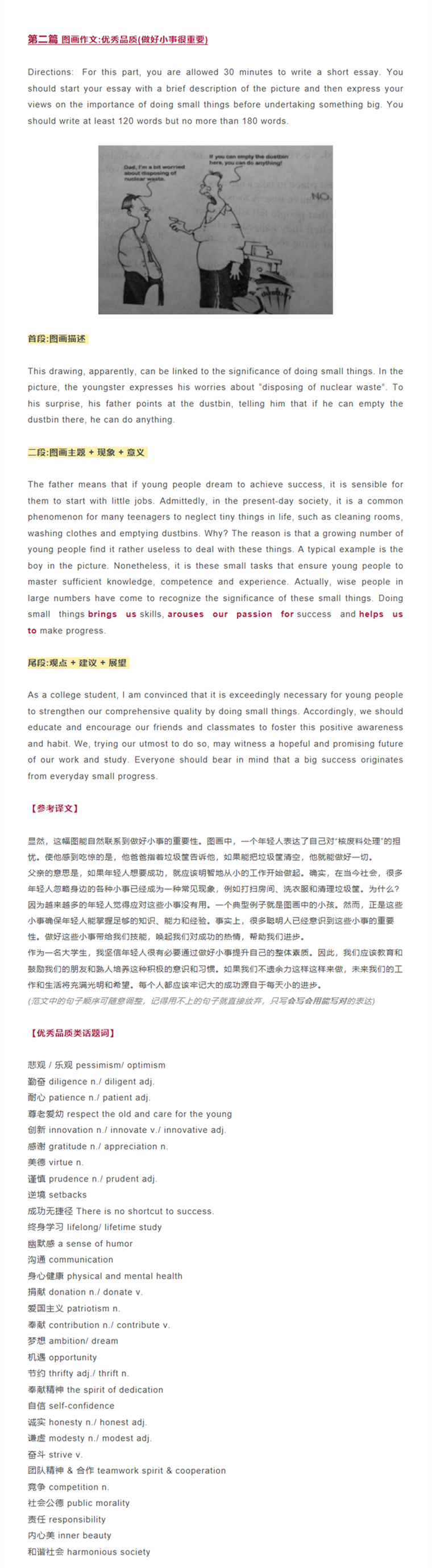 在这5分钟内,先审题,看清标题要求,以免跑题。然后进行一个纲要和内容的构思,想明白自己文章的约摸构造,文章分几段,中间段需要几个论点,是否需要举例说明等等。