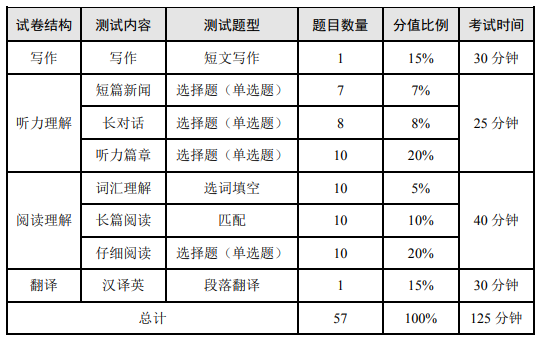 四级试卷构成