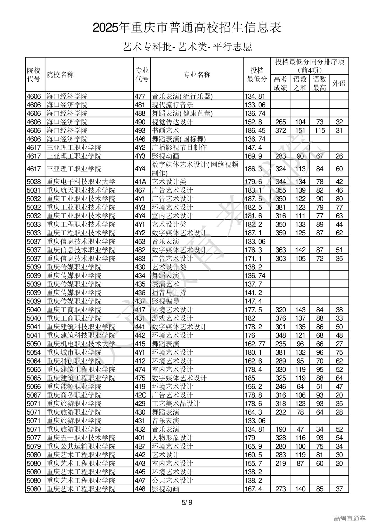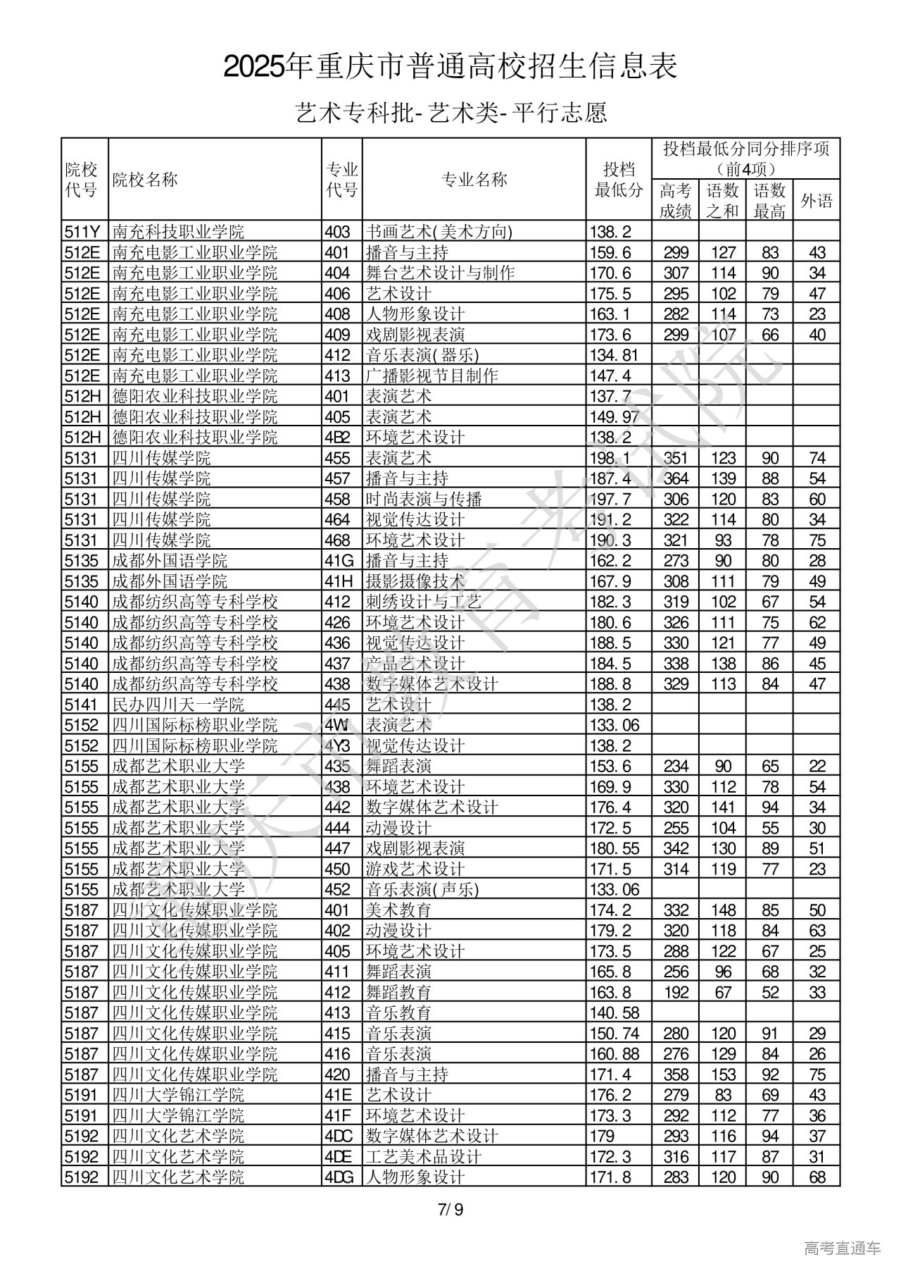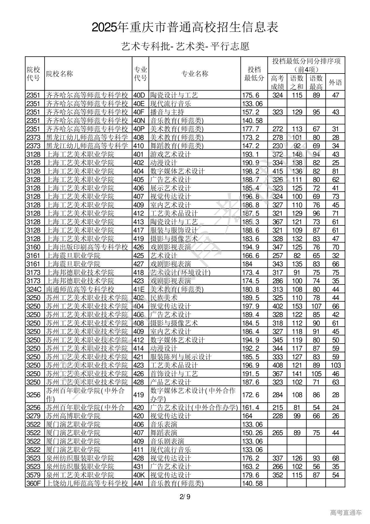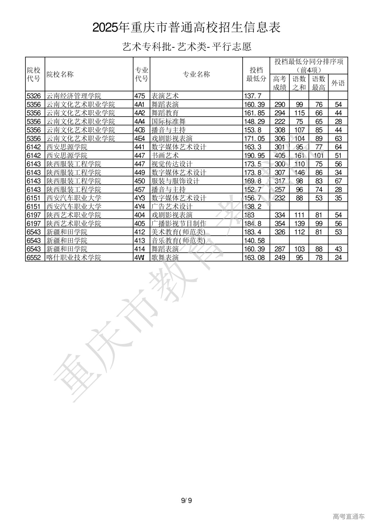 2025年重庆市普通高校招生信息表艺术专科批-艺术类-平行志愿.pdf