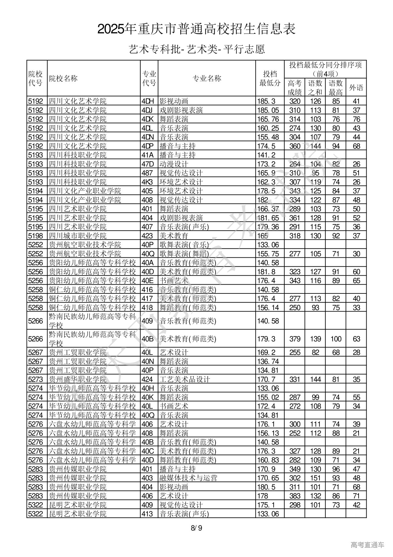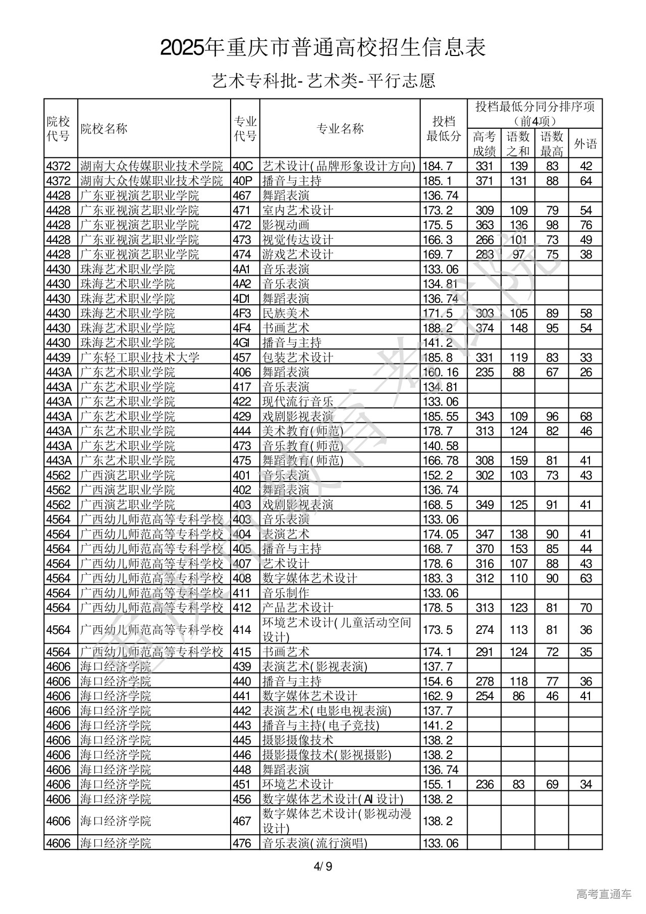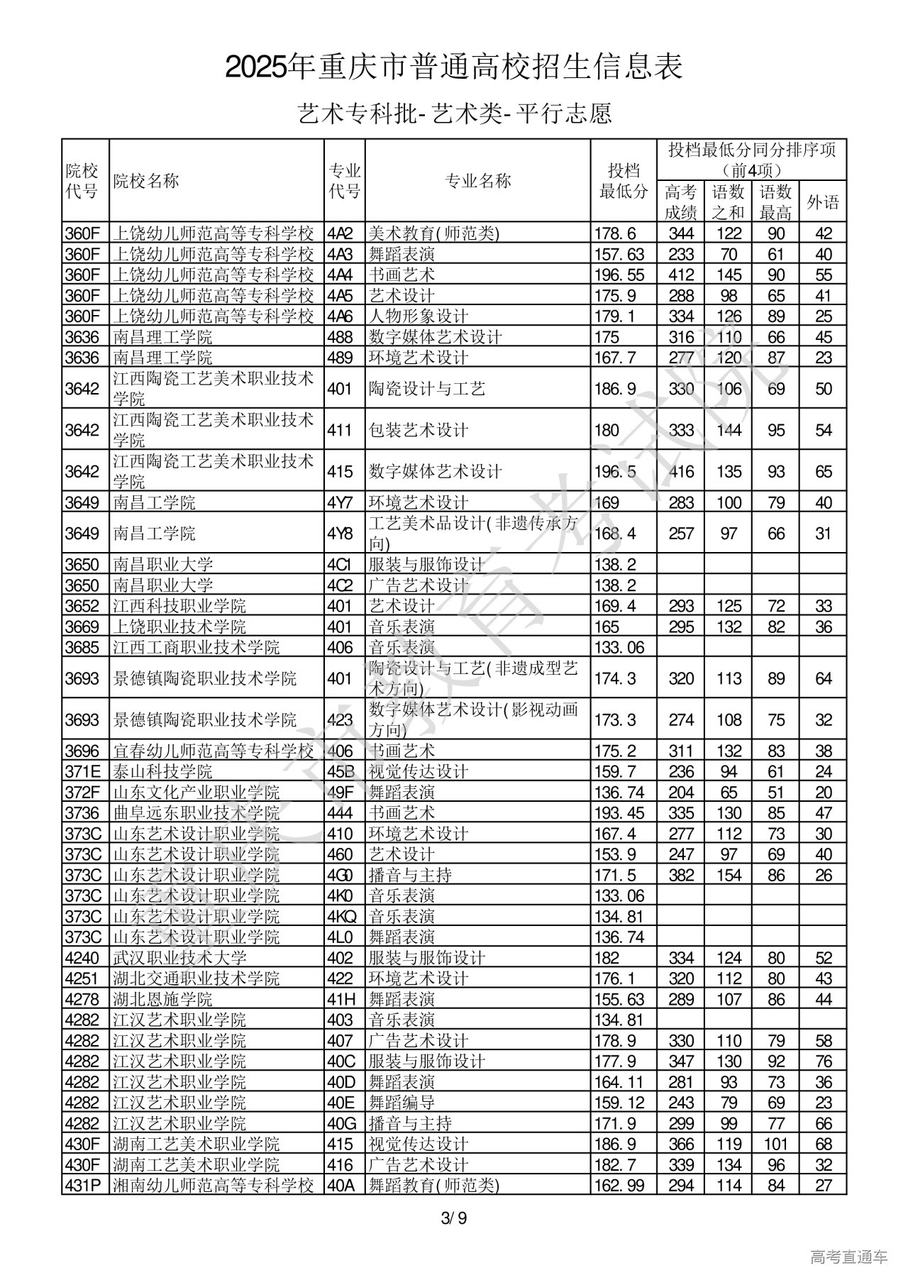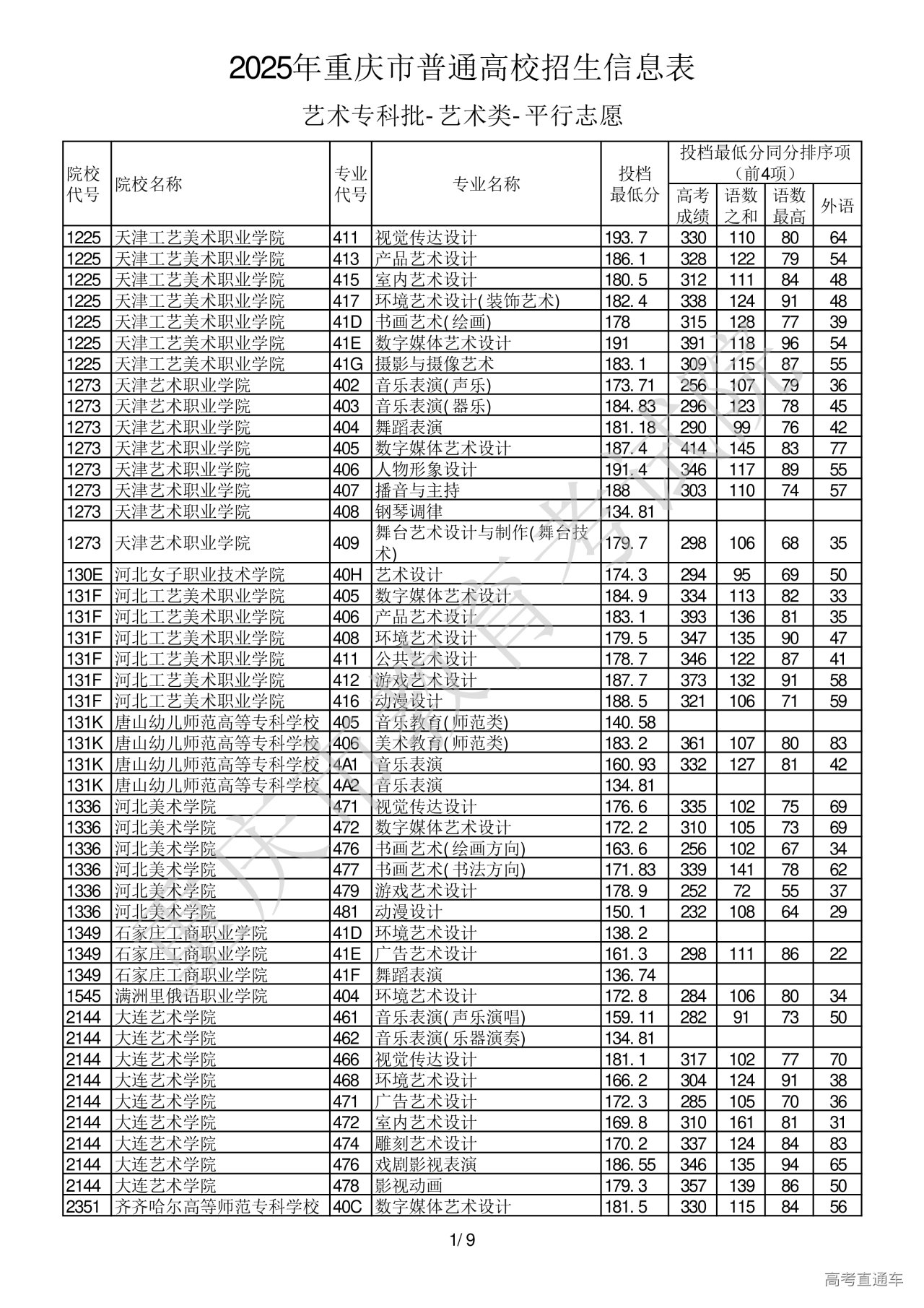 2025年重庆市普通高校招生信息表艺术专科批-艺术类-平行志愿.pdf