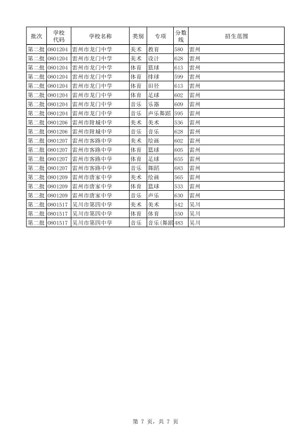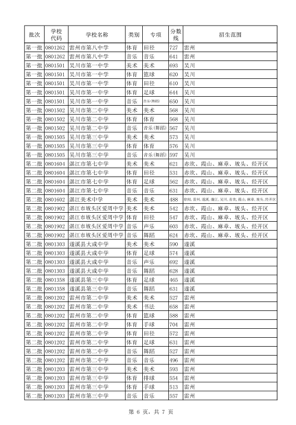 志愿湛江幼儿师范专科学校学前教育专业公费定向单独招生并经面试合格的考生,中考录取分数线根据考生生源地分别为:廉江市:679分;雷州市:643分。志愿岭南师范学院小学教育专业公费定向单独招生并经面试合格的考生,中考录取分数线根据考生生源地分别为:遂溪县:736分;廉江市:731分;雷州市:765分;吴川市:749分。以上两校均按照招生计划与录取人数1:1的比例划线,如果招生学校计划数末位出现多位考生总分相同,先安排“同等条件优先录取”教育优待生投档,如无此类考生或计划有结余,则按照“同分比较”原则确定优先投档的考生。