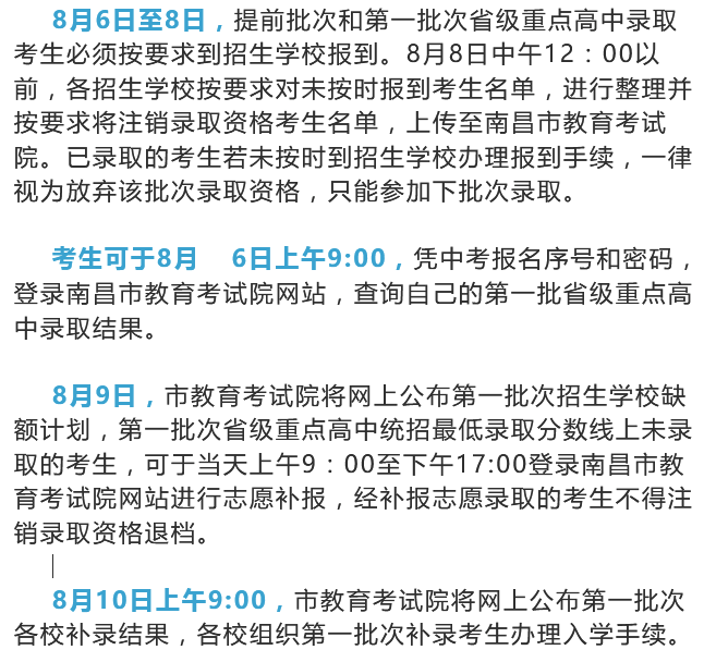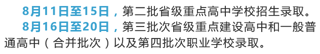 今年我市城区第一批次省级重点高中统招投档最低分数线划定为632分。 其他批次录取时间安排 民办高中学校招生录取