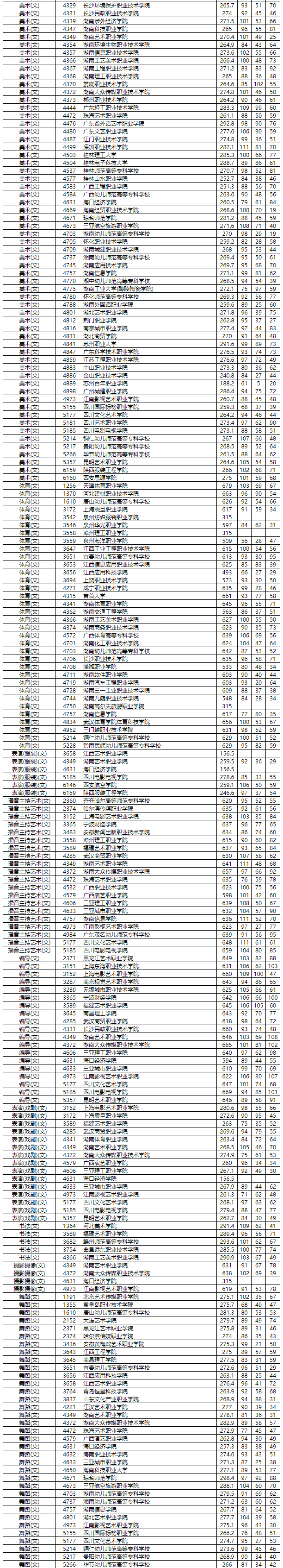 音乐类、美术类、舞蹈类、表演类(服装表演)、表演类(戏剧表演)、书法艺术和书法教育类的综合排序分为高考文化成绩(含政策性加分)×30%+专业统考成绩×70%,结果保留1位小数。体育类、编导类、播音与主持艺术类、摄影摄像类、职高艺术类的综合排序分为高考文化成绩(含政策性加分)+专业统考成绩。