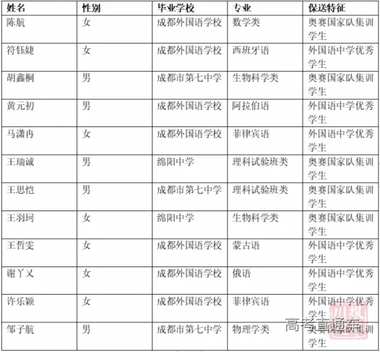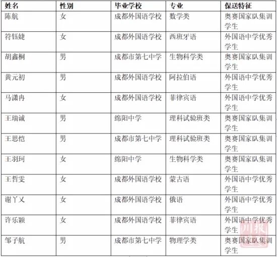 高考在即,近日,教育部阳光高考平台公示了2020年高校保送生拟录取名单。北京大学、清华大学拟分别在全国录取保送生176人、191人,合计367人,其中有32名四川高中生入选。