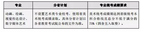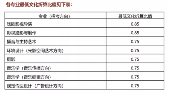 1.造型艺术、中国画、书法学、实验艺术、城市艺术设计专业考生文化课相对成绩为75分;