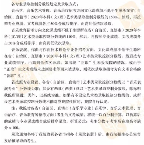 1.作曲与作曲技术理论专业、音乐学专业(含音乐教育民族班)不做分省招生计划,根据校考成绩全国排名,以不超过招生计划数1:4的比例确定参加“全国普通高等学校招生统一考试”名单(以下简称“文考名单”)。