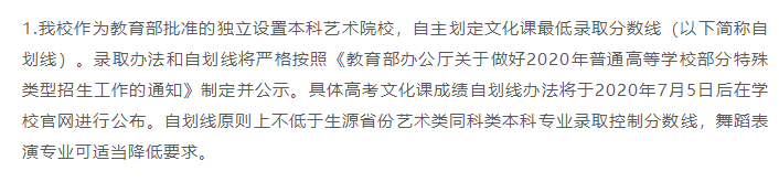 那么,2020年全国各大艺术院校的本科招生文化课控制线划定办法是什么呢?其实,这个在各大艺术院校的招生简章中就能看到,艺考界为帮助各位考生节约时间,特地整理汇总了“30+18所”院校文化控制线划定办法,供大家查看!