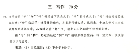 本题注重传情达意,无论议论、记叙、抒情,还是史论、评论、杂感,乃至创作、非虚构写作……都要真正做到“情动于中而形于言”。