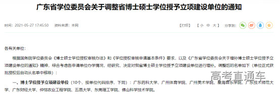 2021年,广东省共10所高校获批博士硕士学位授予立项建设单位。广东省学位委员会对各立项建设单位的工作提出了明确要求,“……采取有效措施进行针对性的整改补强,着力提高学科建设水平”“首次列入清单的单位,要把列入省立项建设单位作为学校建设发展的新起点”。今年,立项建设单位之一的佛山大学,就成功升格“博士学位授予单位”。