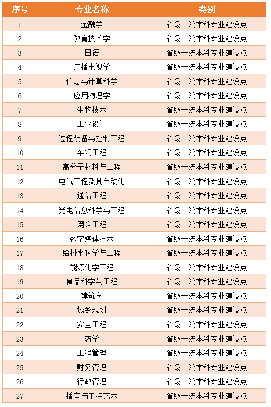 ◈入选首批省级一流本科专业建设点的27个专业分别是:
