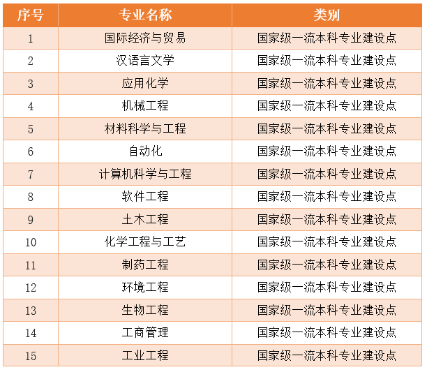 入选首批国家级一流本科专业建设点的15个专业分别是: