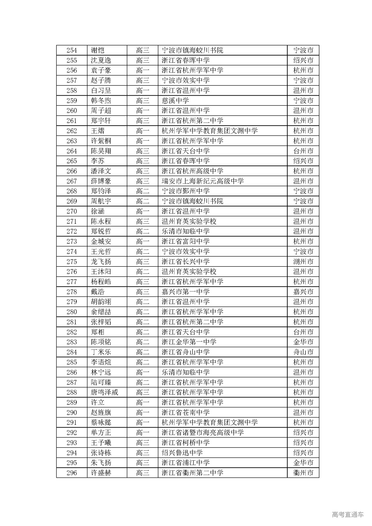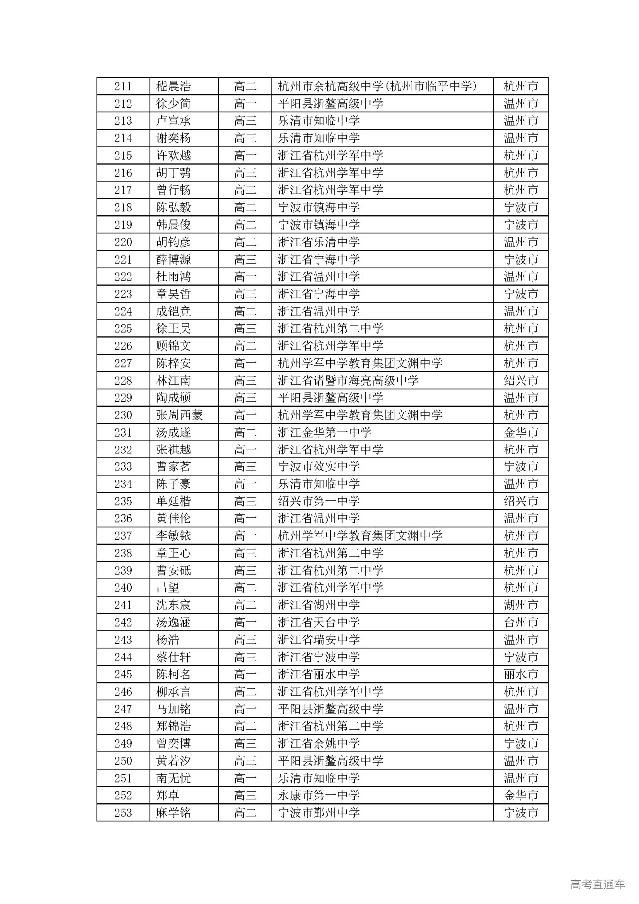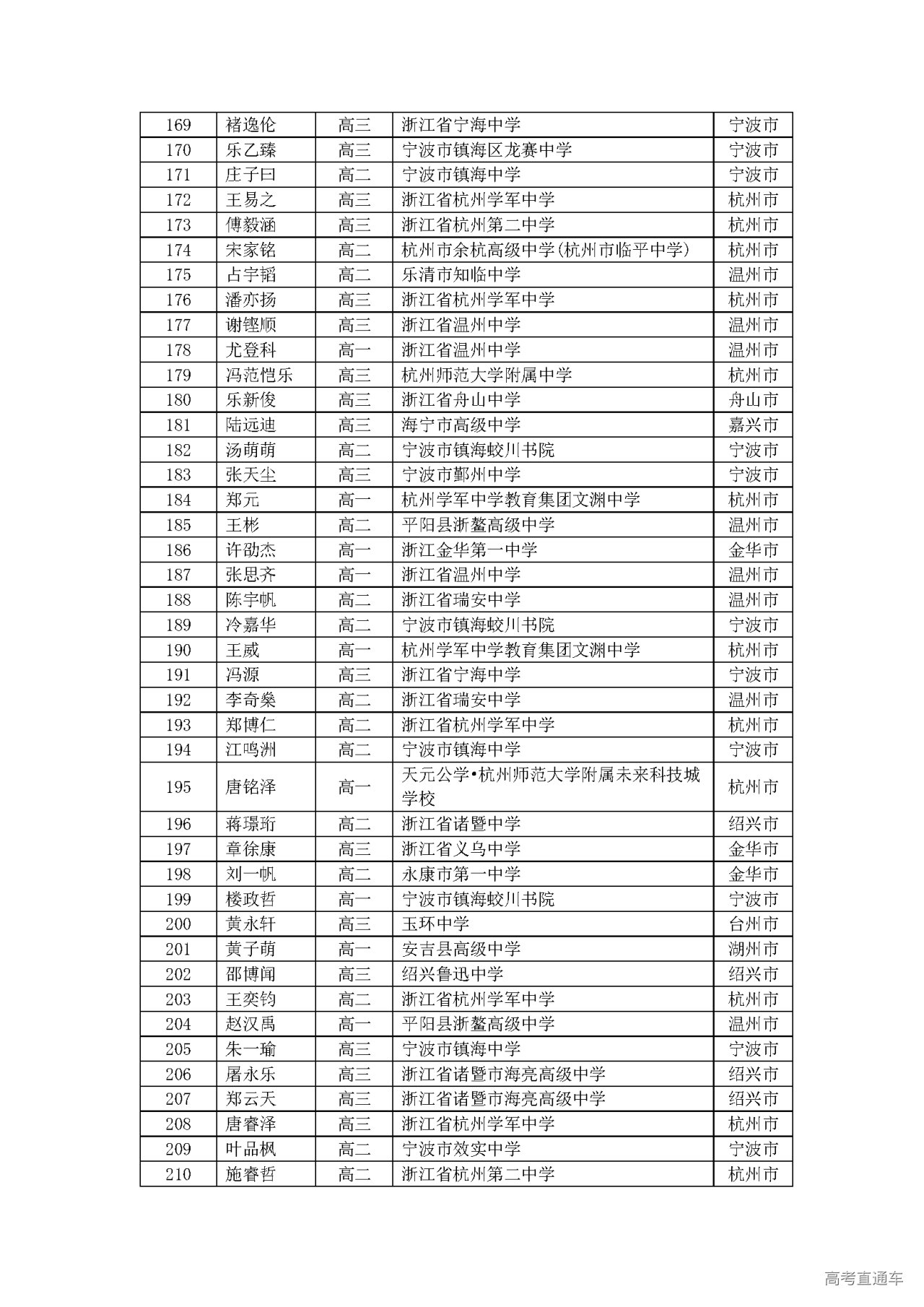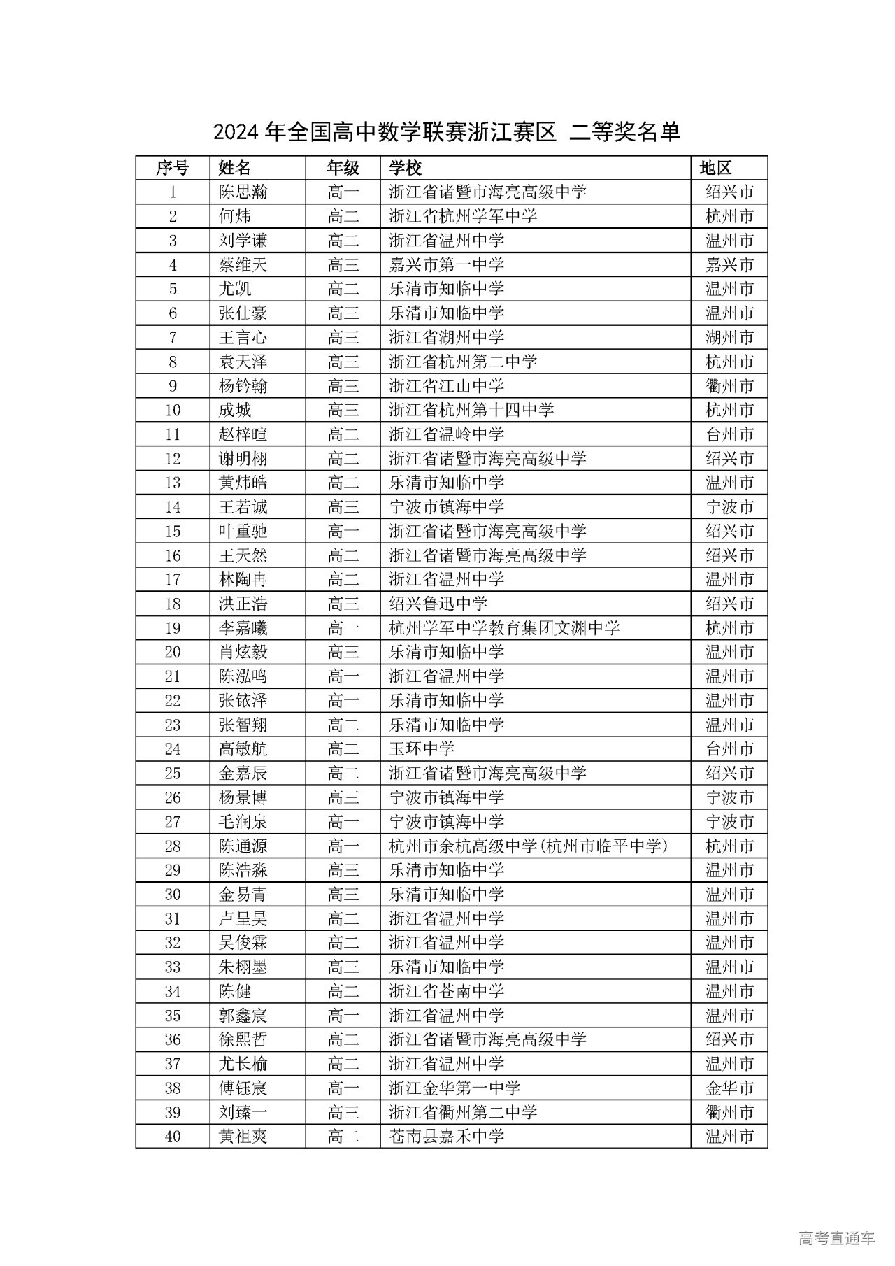 2024年第40届全国中学生数学联赛省二名单(浙江)