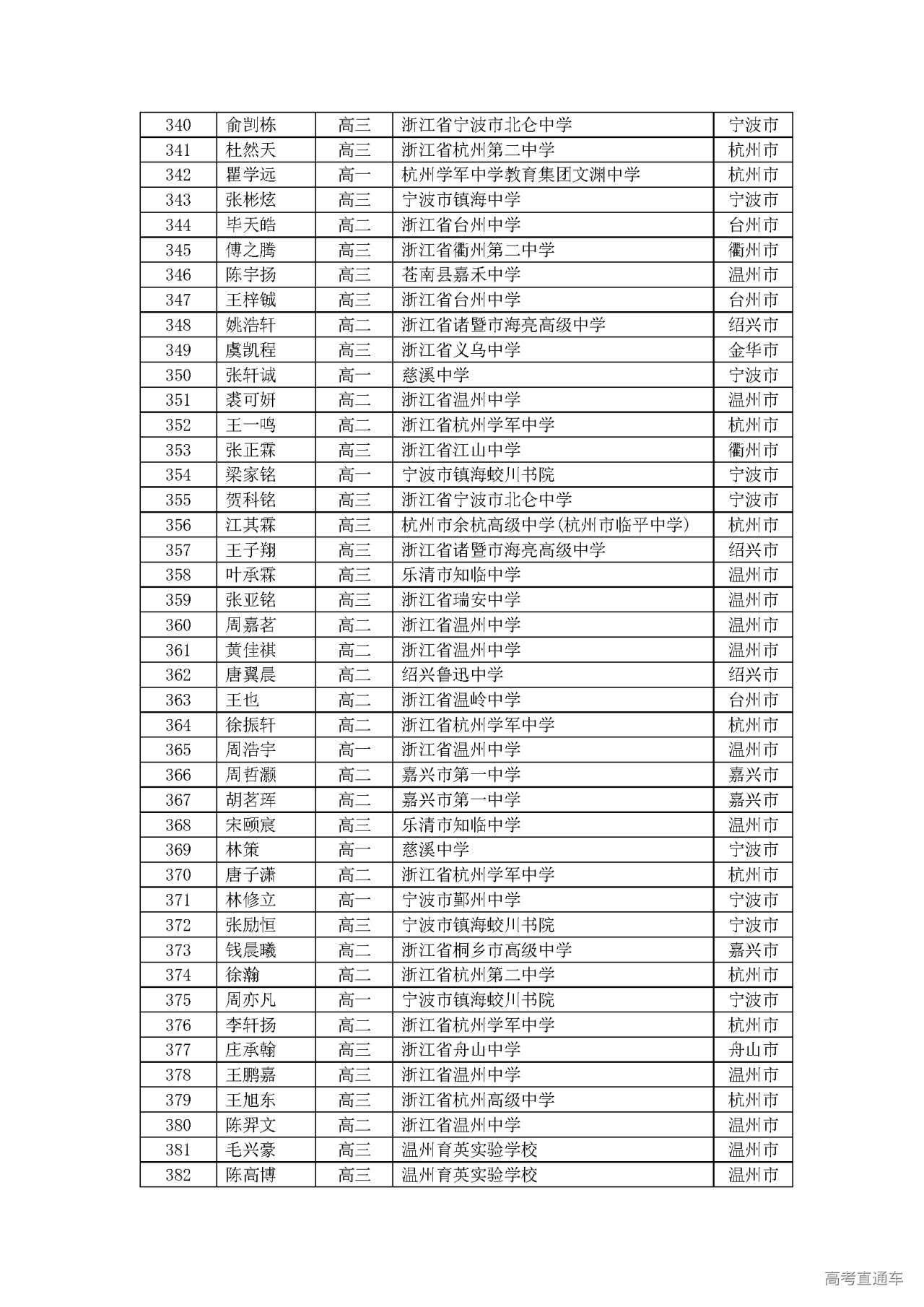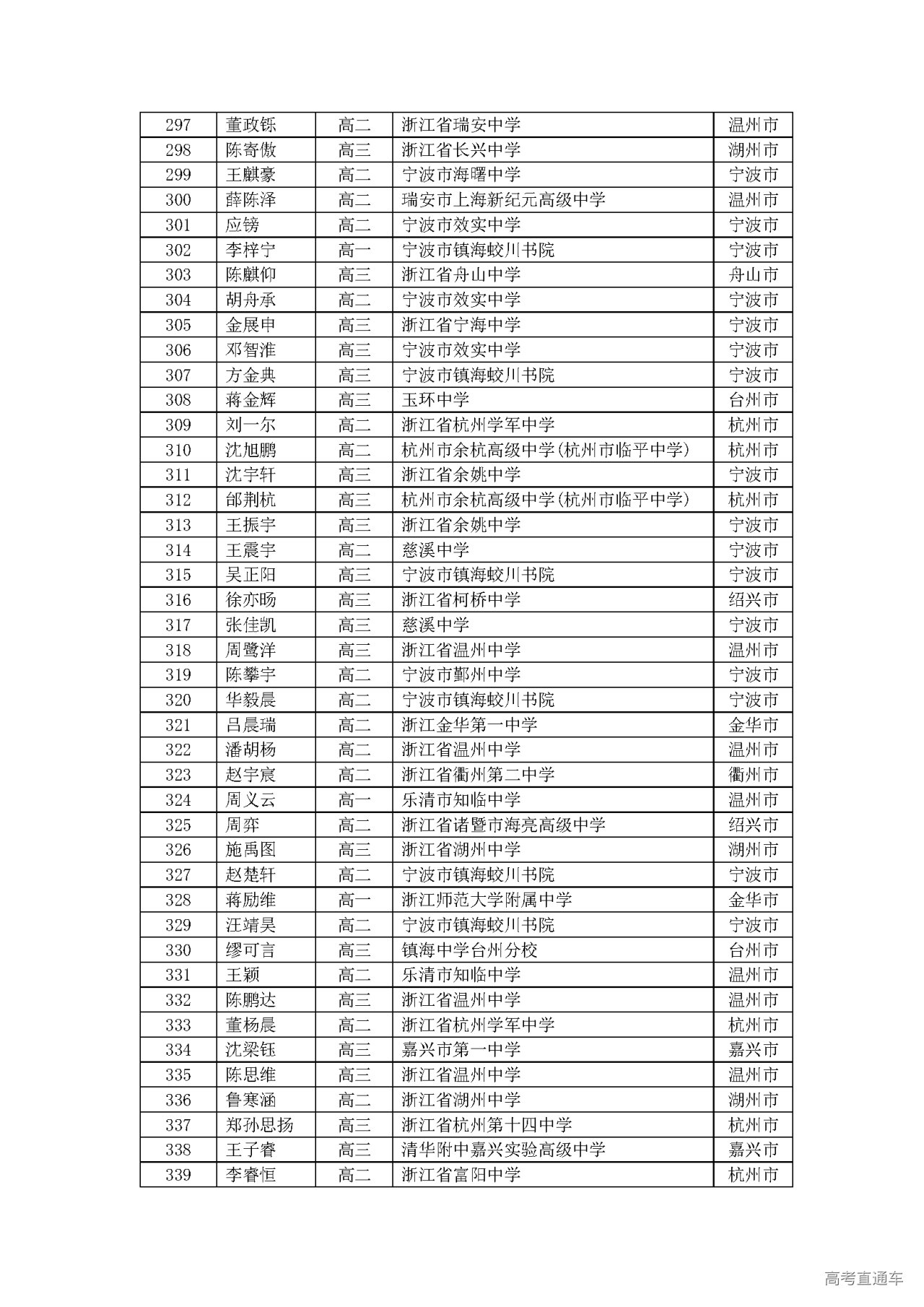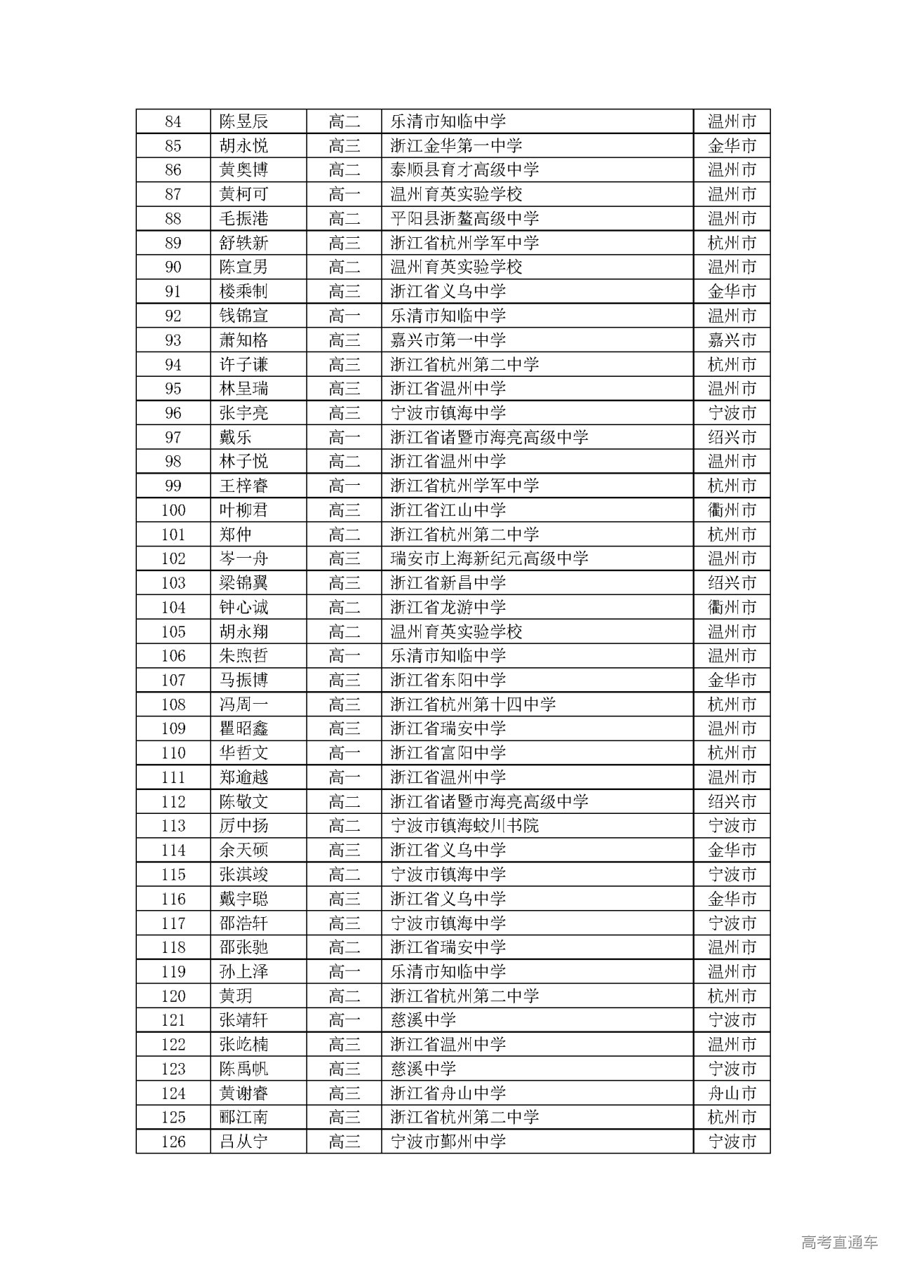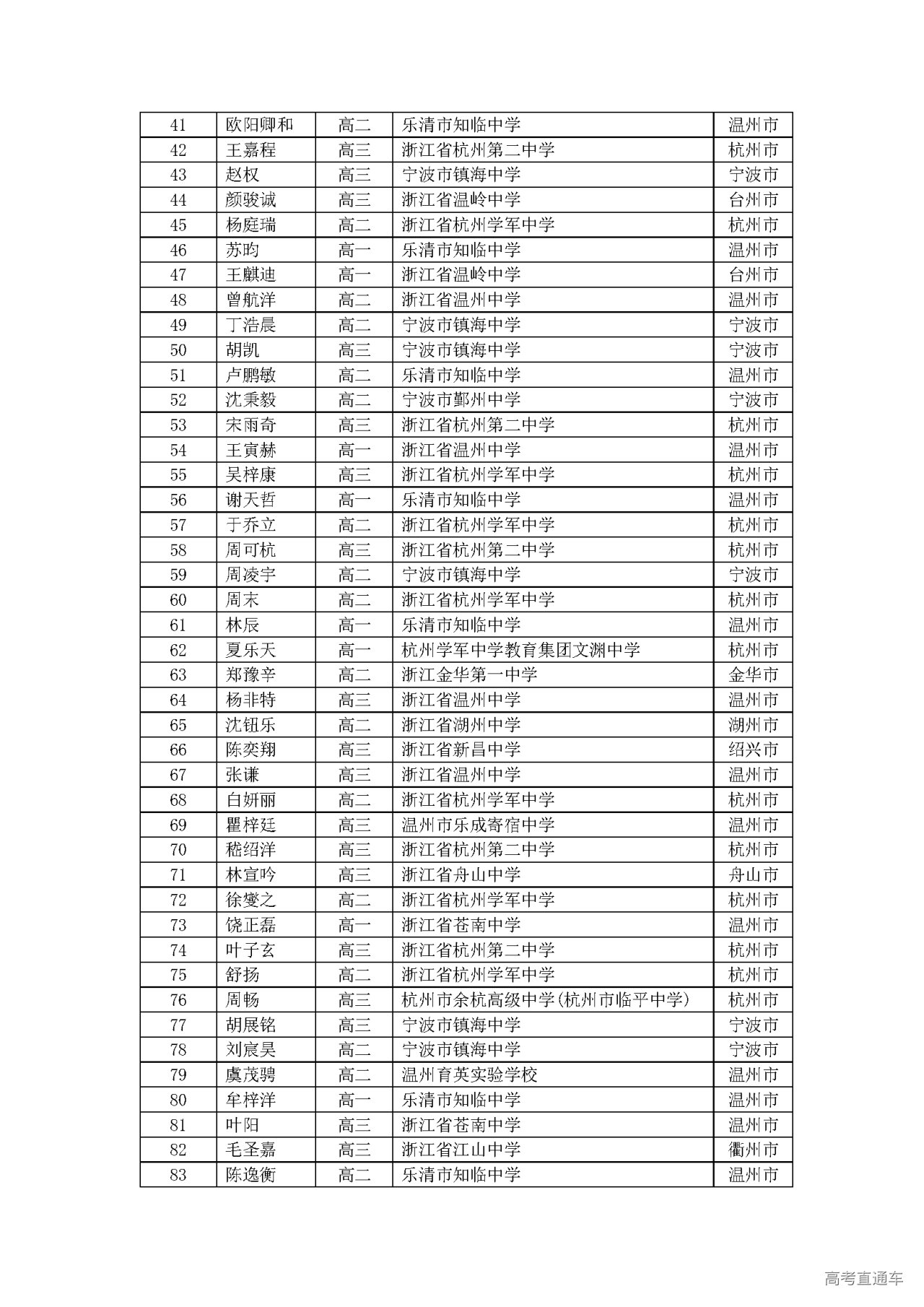 2024年第40届全国中学生数学联赛省二名单(浙江)