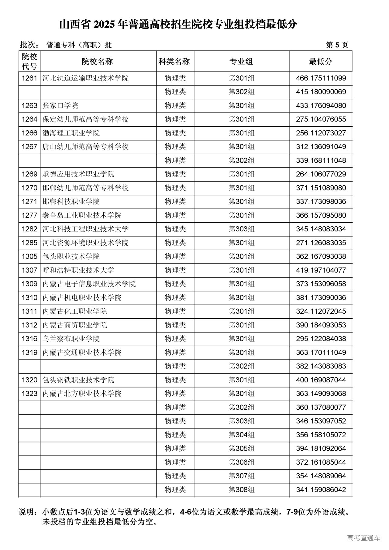 2025年普通高考院校专业组投档最低分_专科_5物理类.pdf