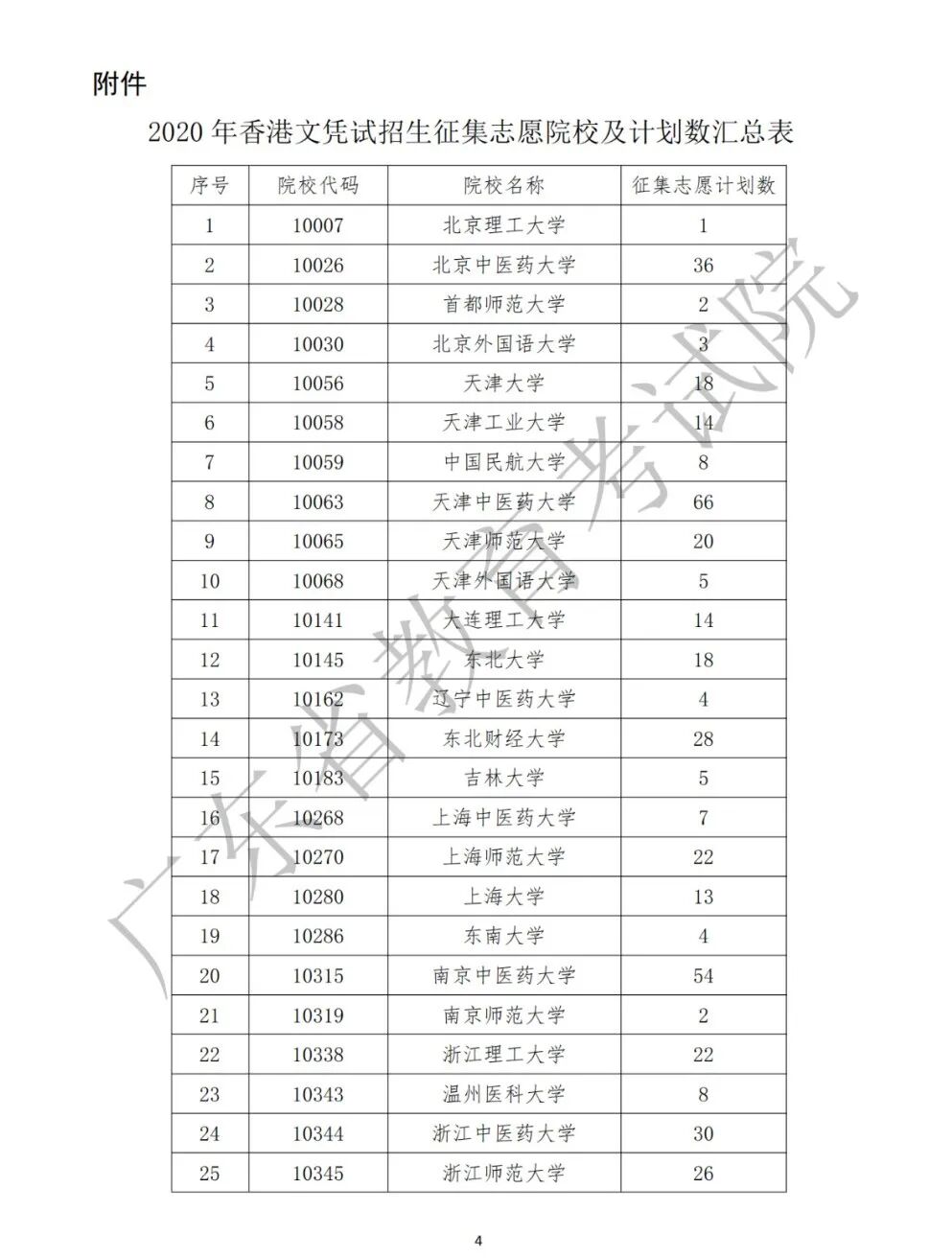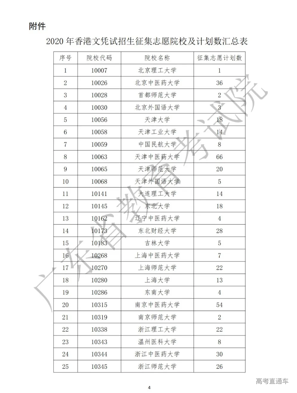 附件:2020年香港文凭试招生征集志愿院校及计划数汇总表
