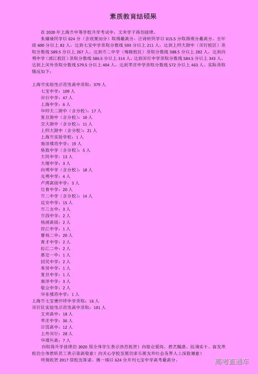 ★市零志愿共录取24人,其中复旦附中1人,交大附中5人,宝华二4人,曹杨二中1人,七宝中学1人,控江中学1人,格致中学1人,复兴中学1人,育才中学2人,交附嘉定1人,南洋模范中学1人,复附青浦1人,进才中学2人,建平中学1人,市西中学1人,零志愿录取率达到了14.9%