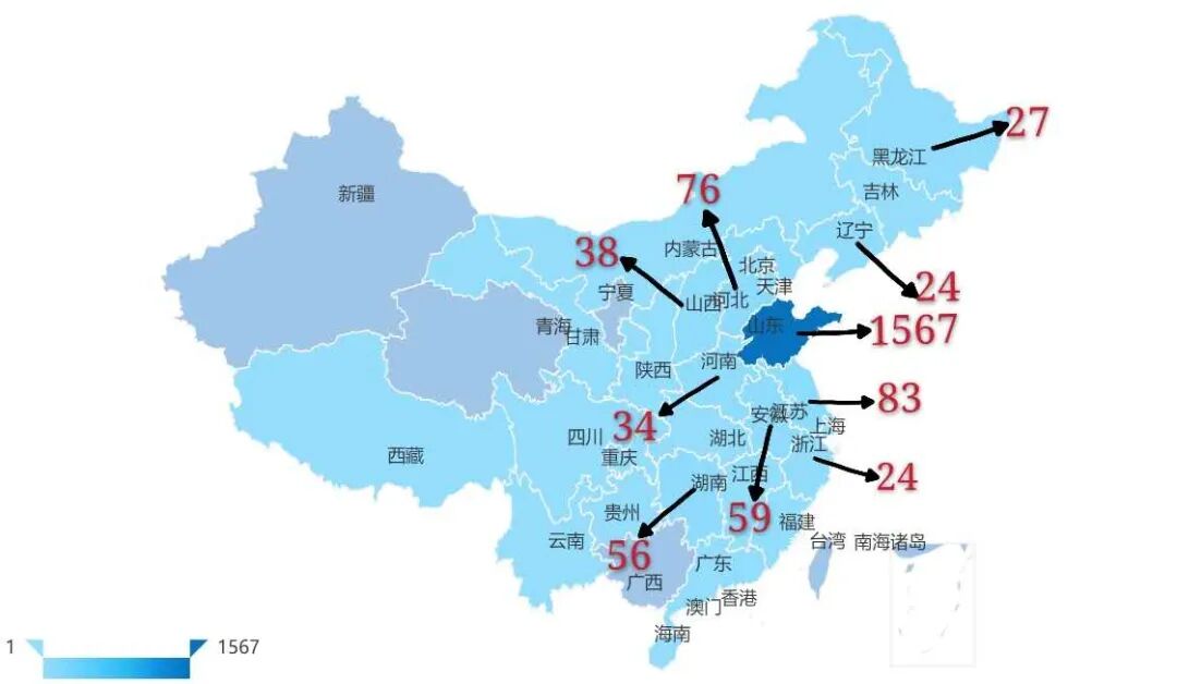 TOP1.山东:1567人