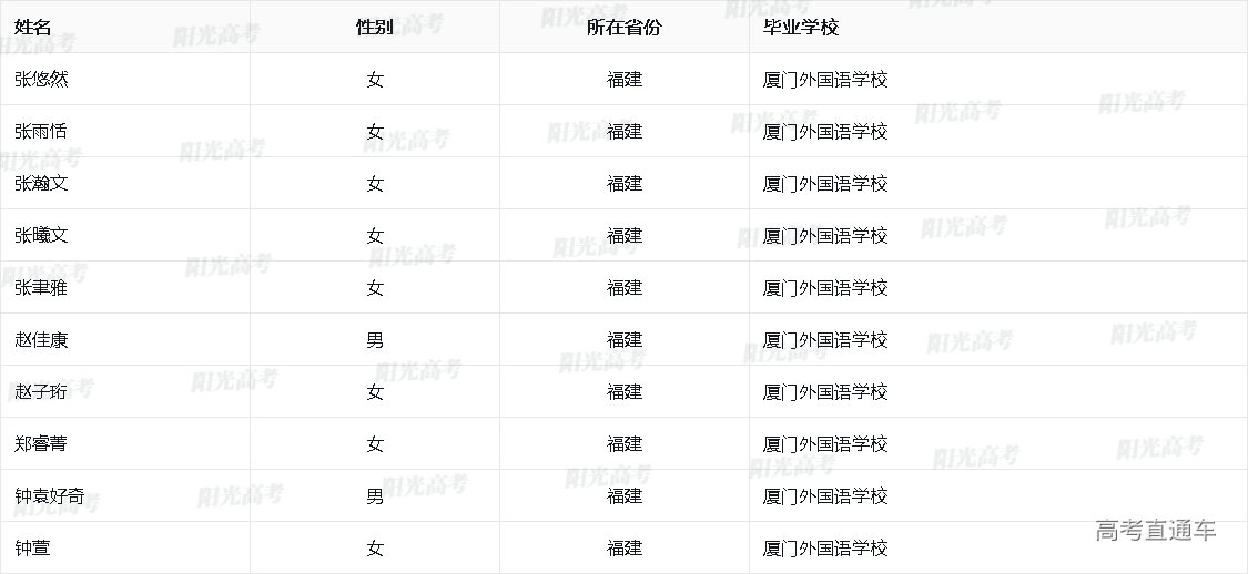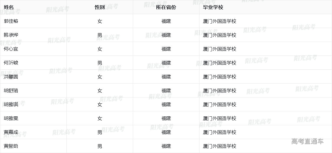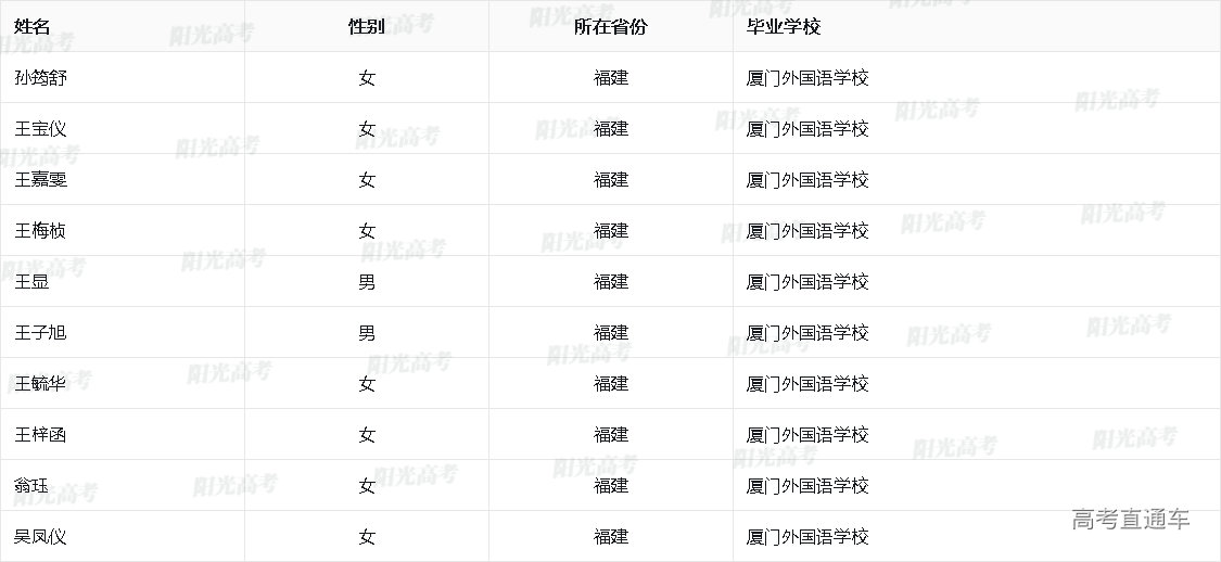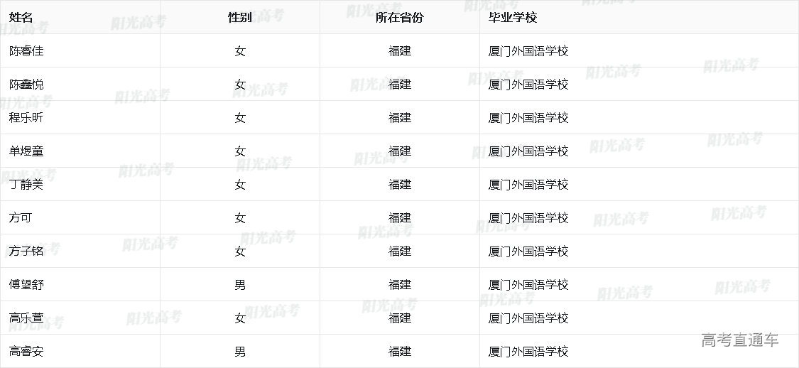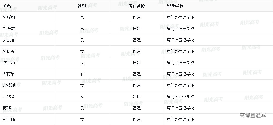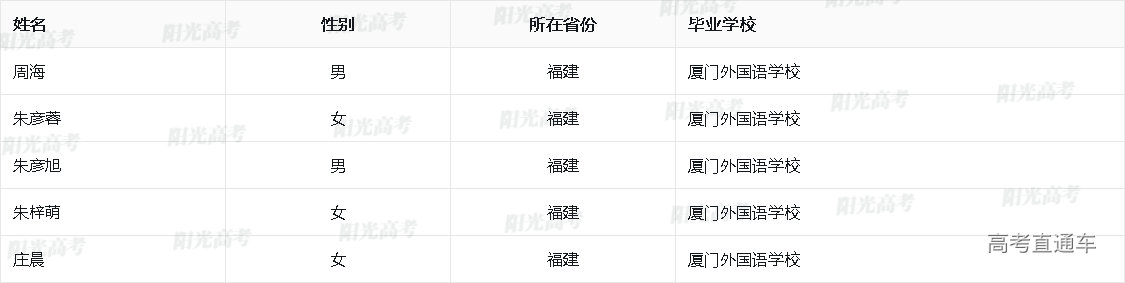 2025年外语类保送生资格名单(福建)