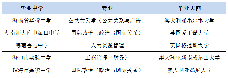海南省2018年部分毕业生去向