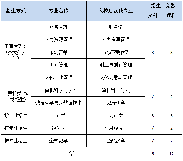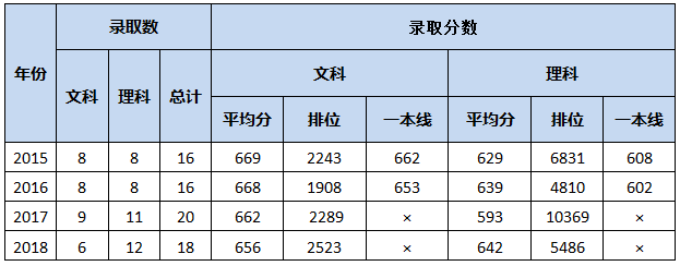2018年我校在海南本科A线段招生录取,计划18人,其中文科6人,理科12人。