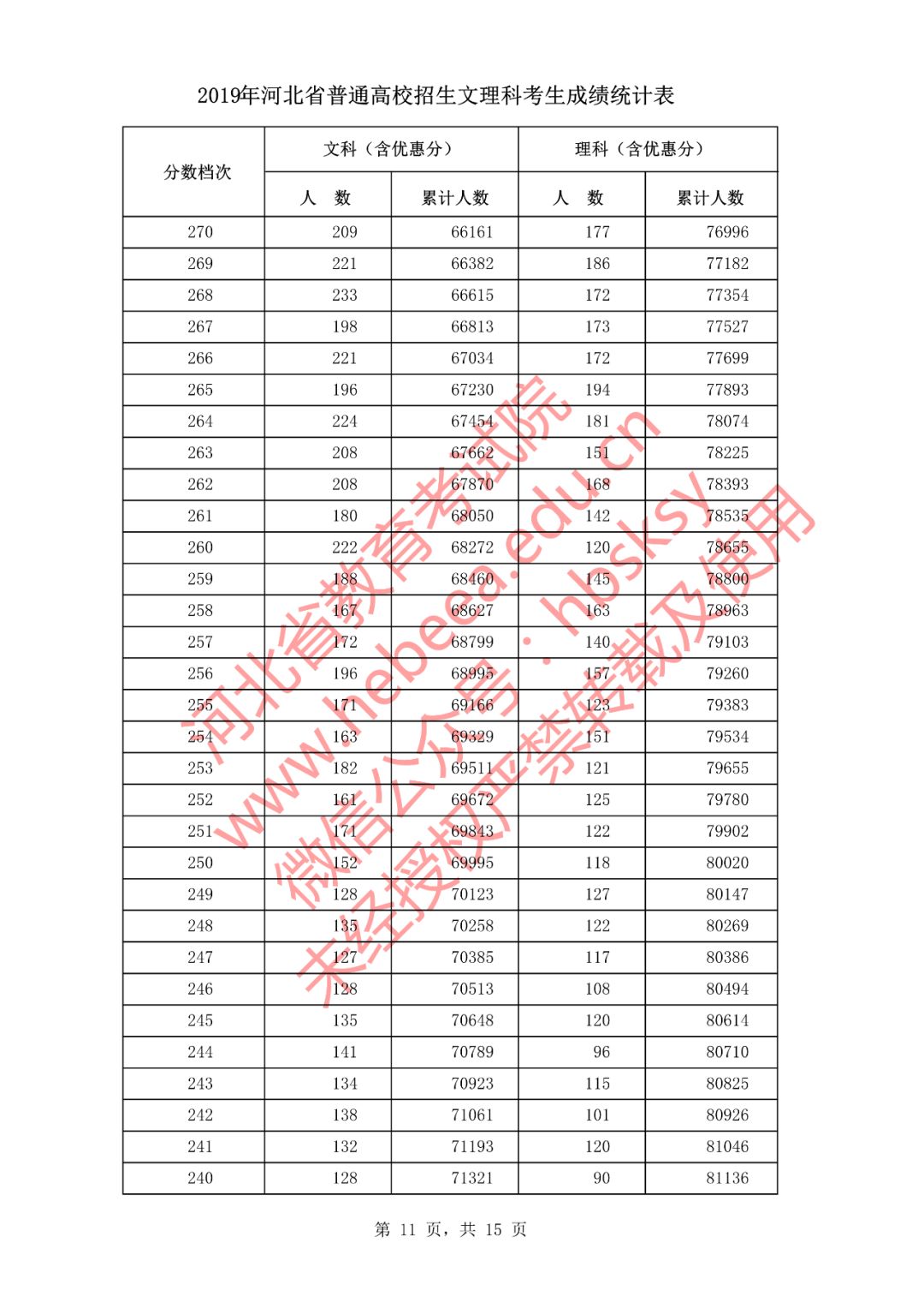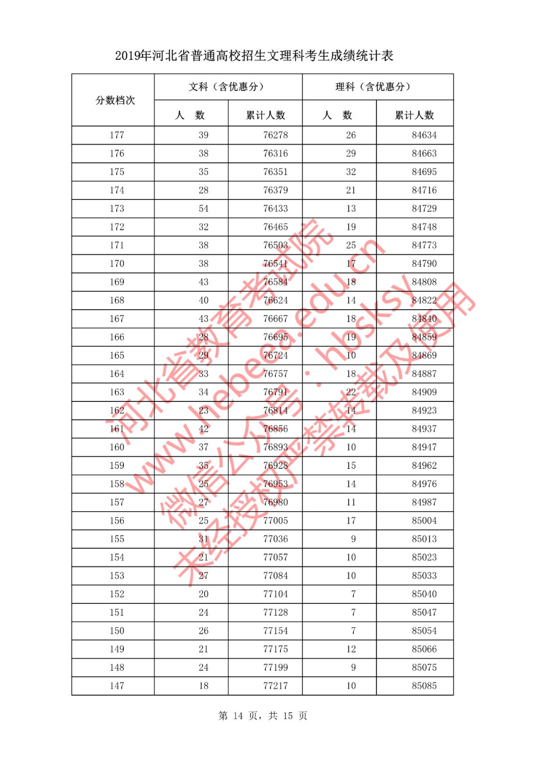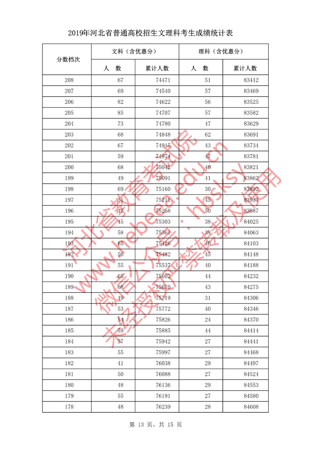 2019年河北省普通高校招生文理科考生成绩统计表(截止到2019年8月1日18时本科二批二志愿录取结束后)