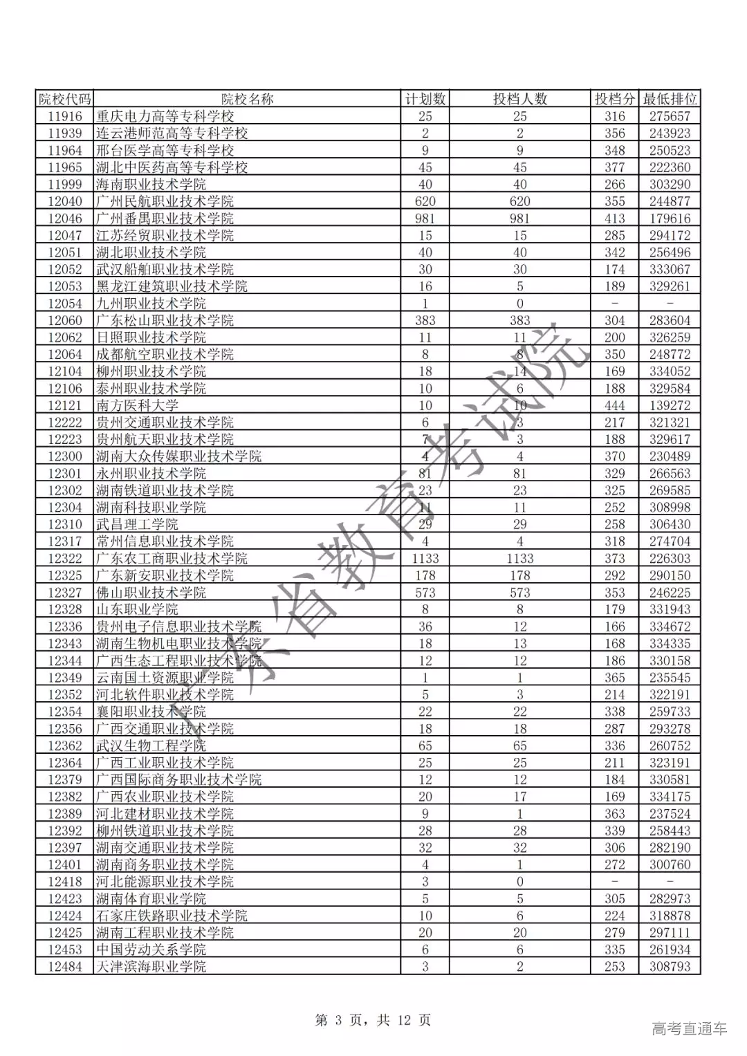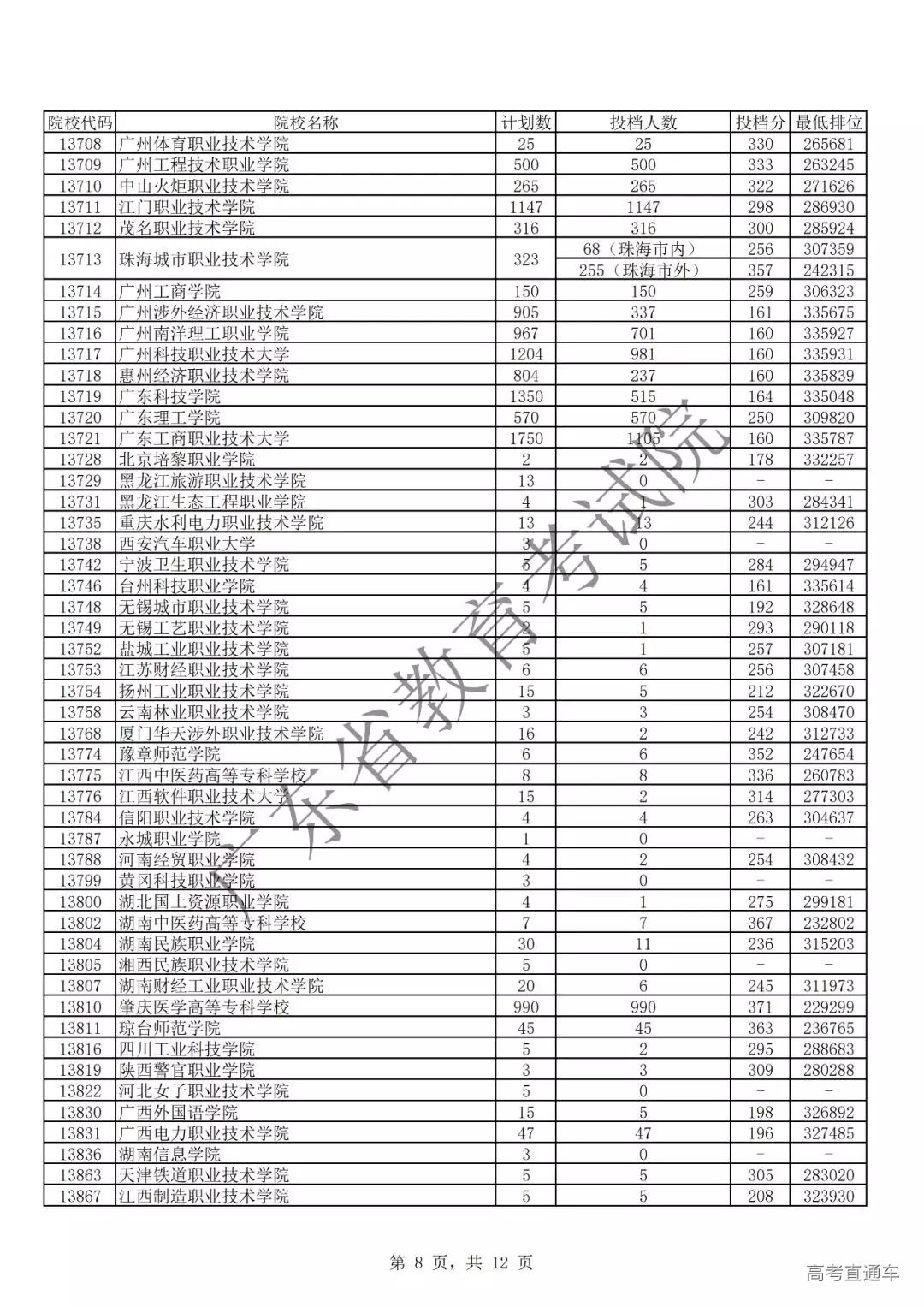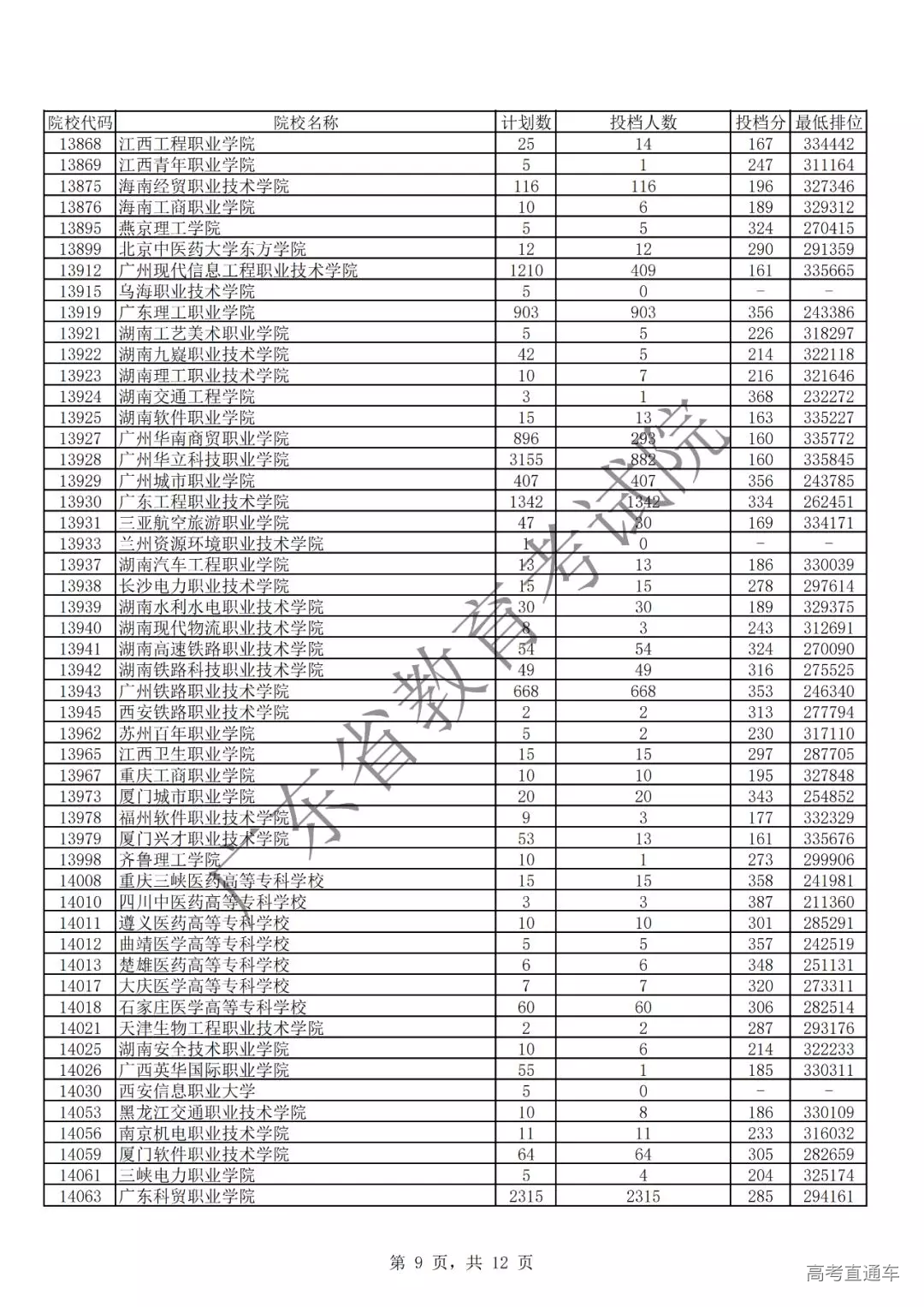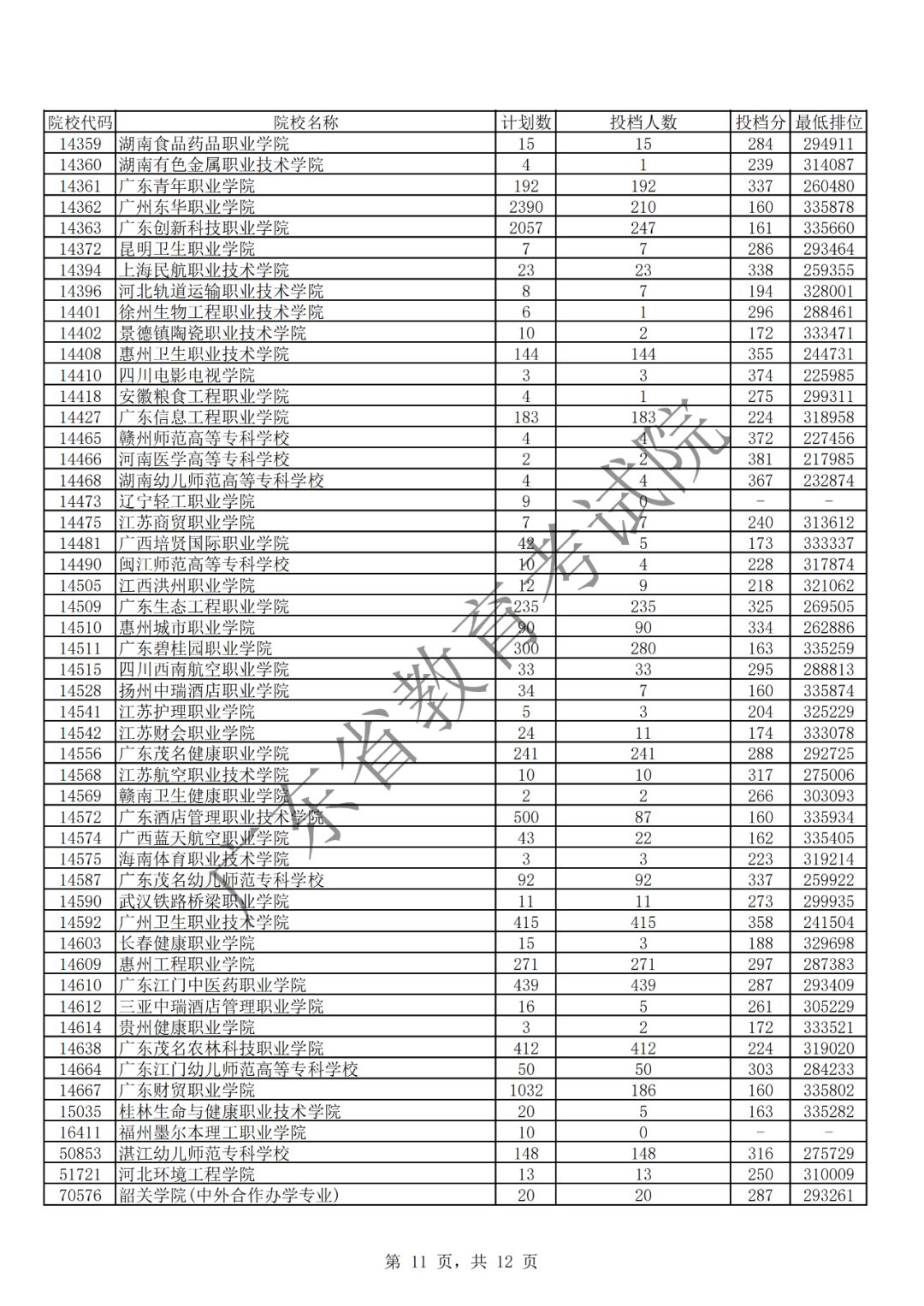 广东省2019年专科理科投档情况