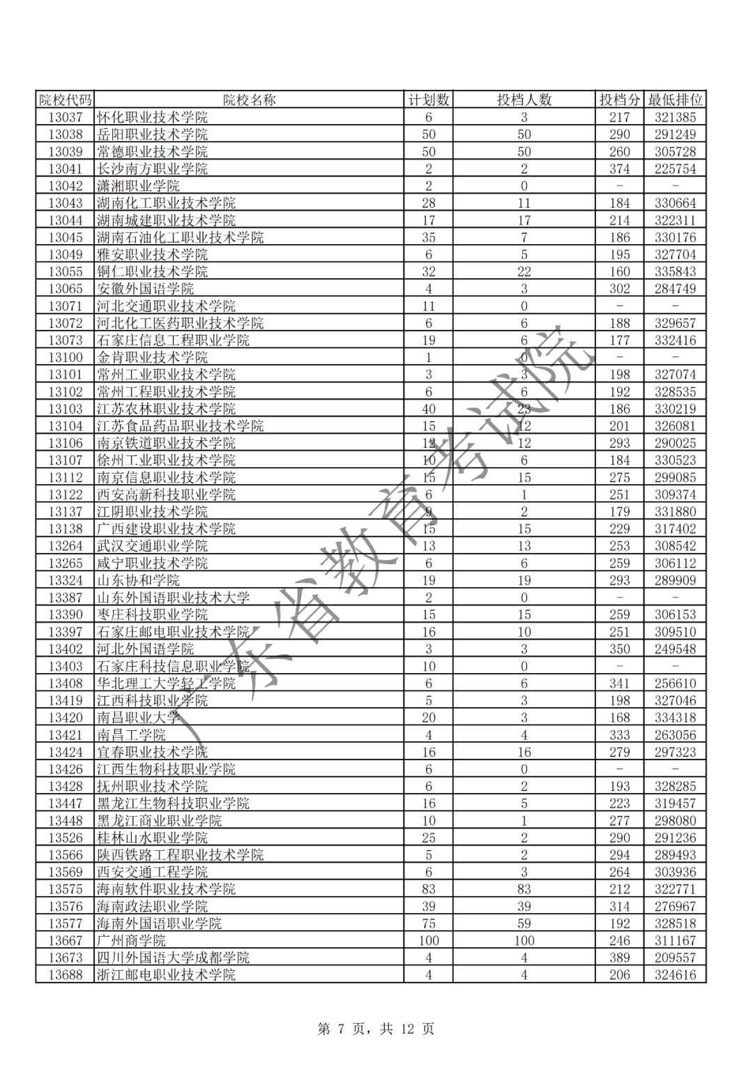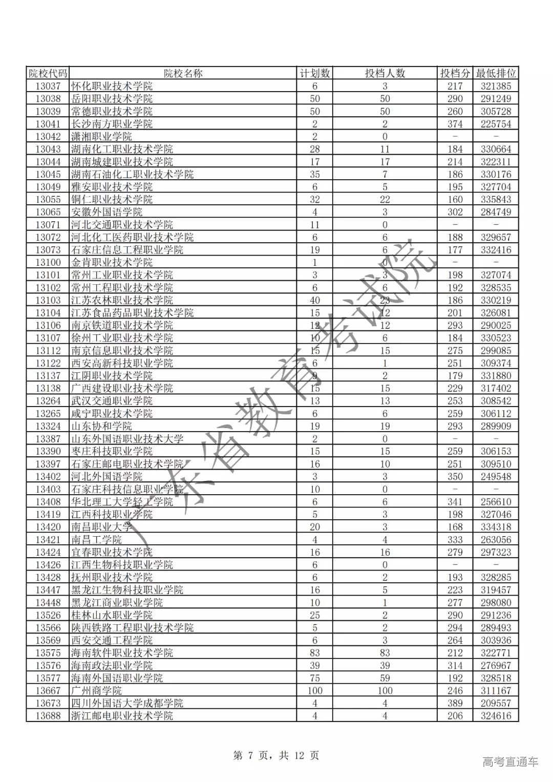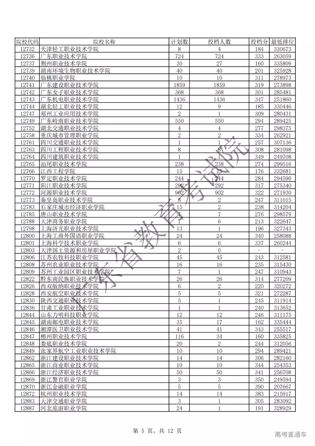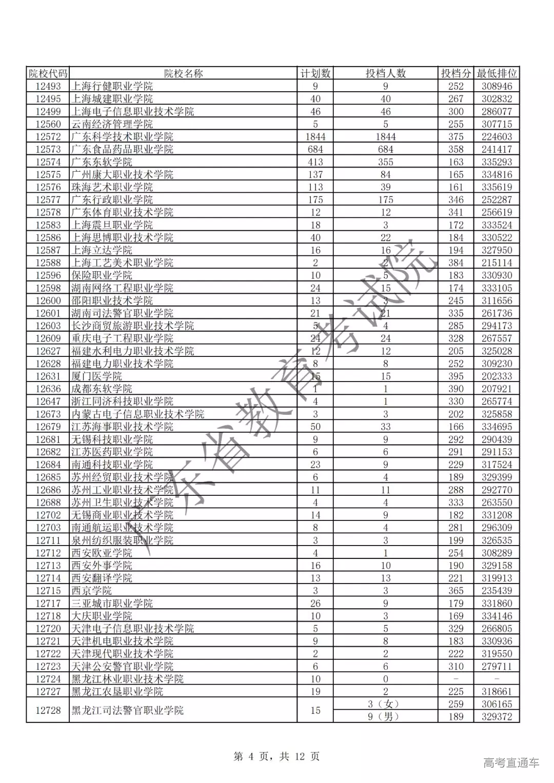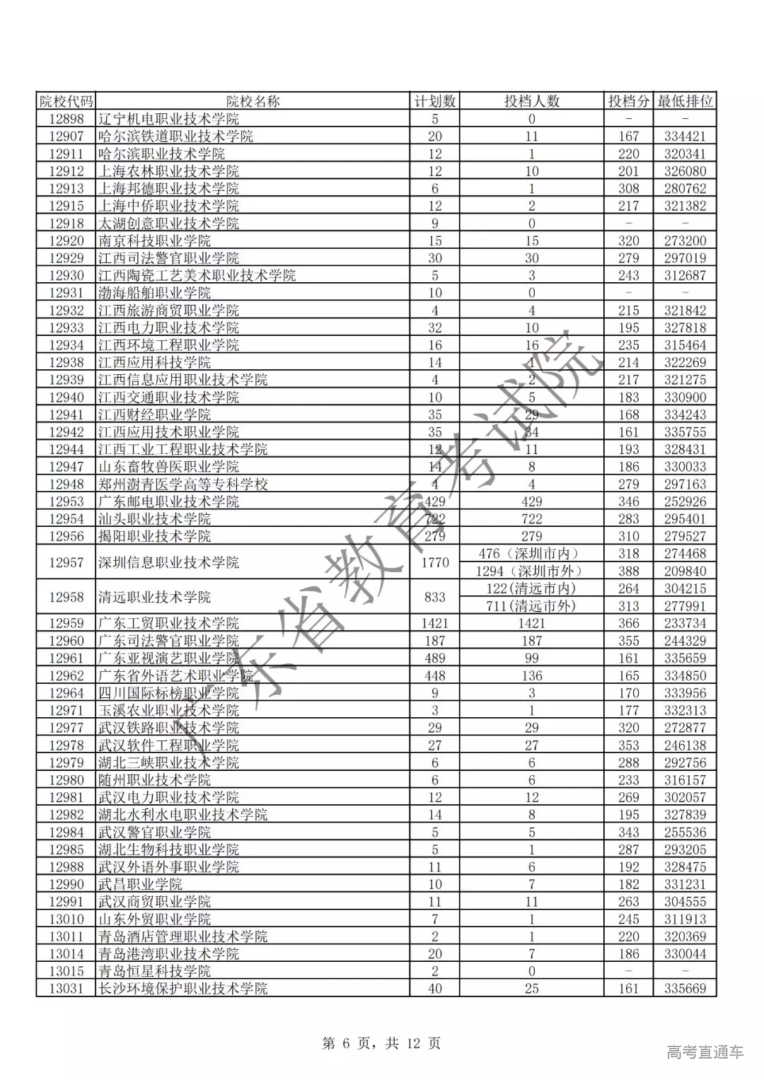 广东省2019年专科理科投档情况