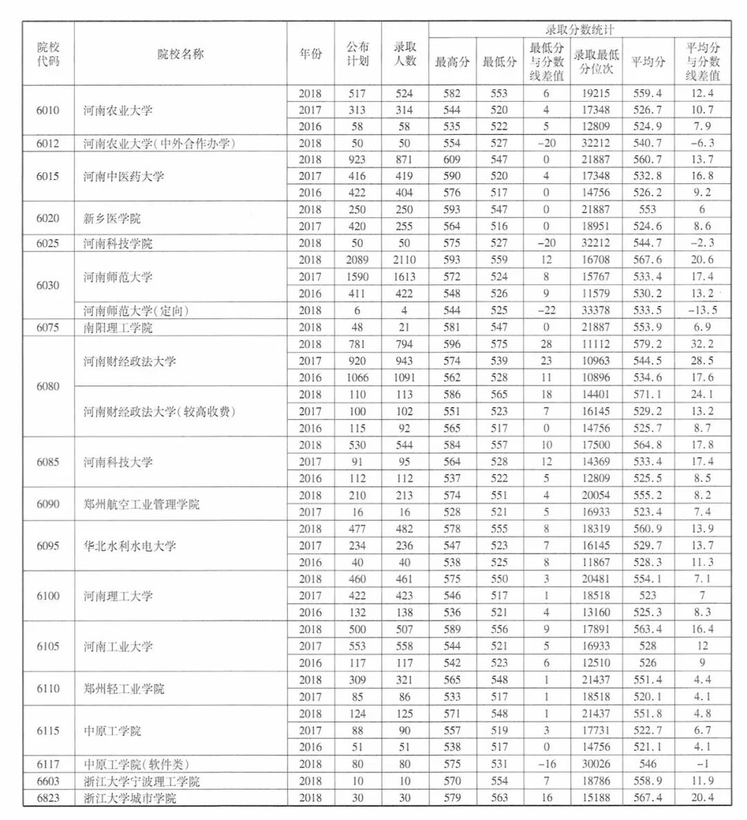 权威!近3年河南高招本科一批(文科)录取情况统计表