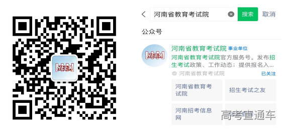 (一)请考生扫描下方二维码,关注“河南省教育考试院微信公众号”或微信搜索“河南省教育考试院”公众号并点击关注。