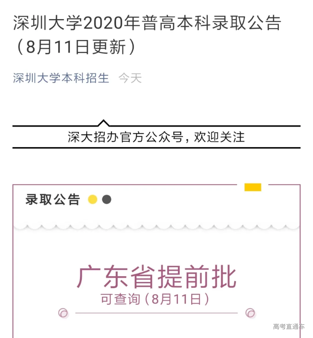 2020年深圳大学广东省提前批录取结果于今早放开查询啦!