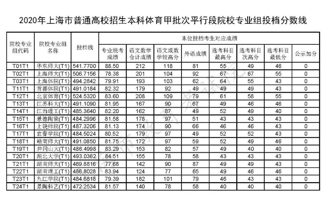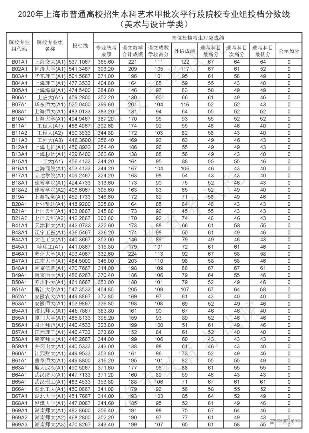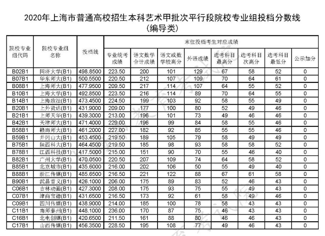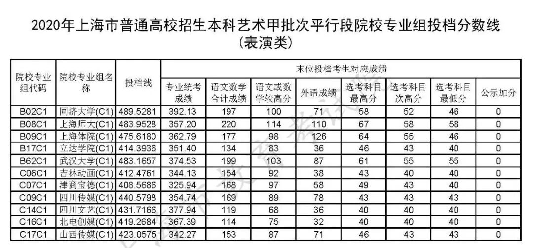 本科艺体类甲批次平行段院校专业组投档线公布: