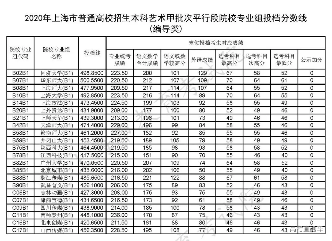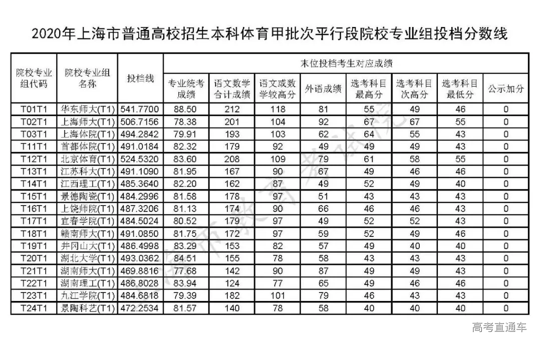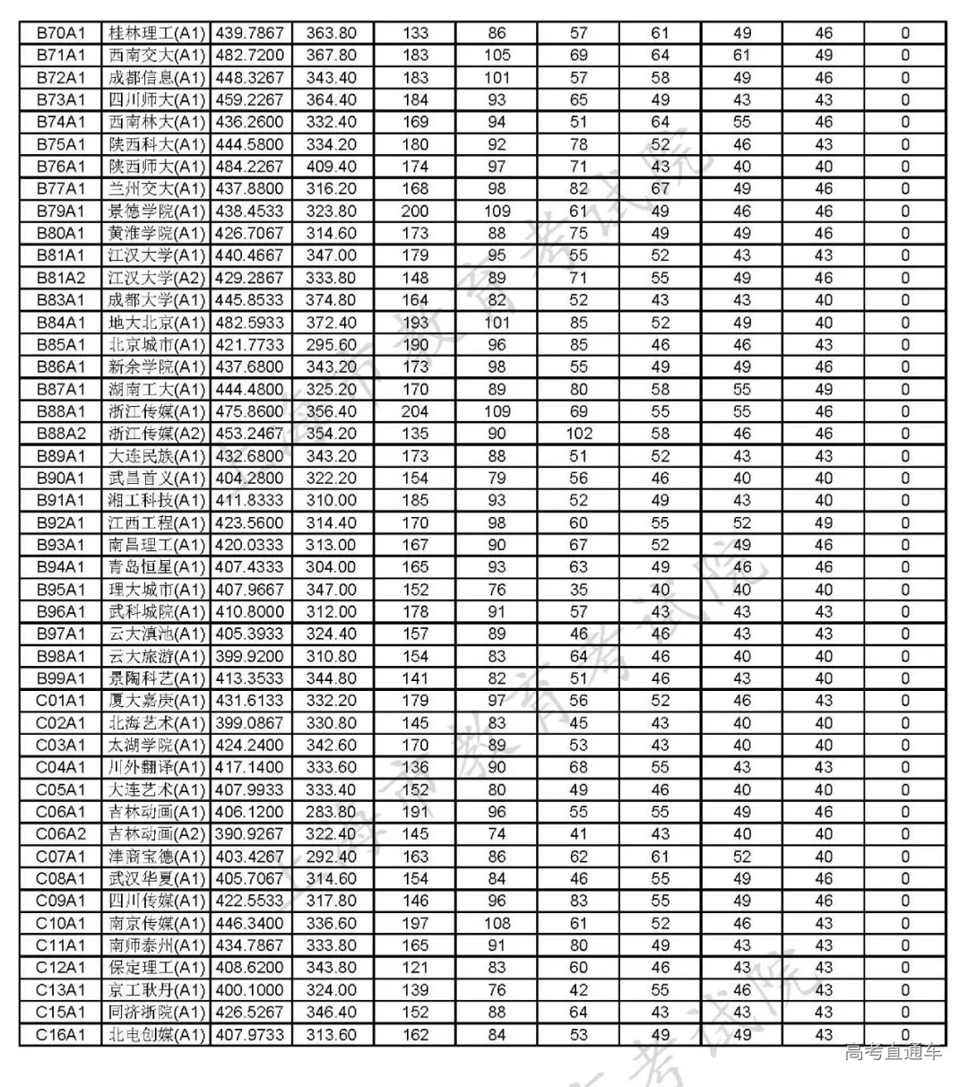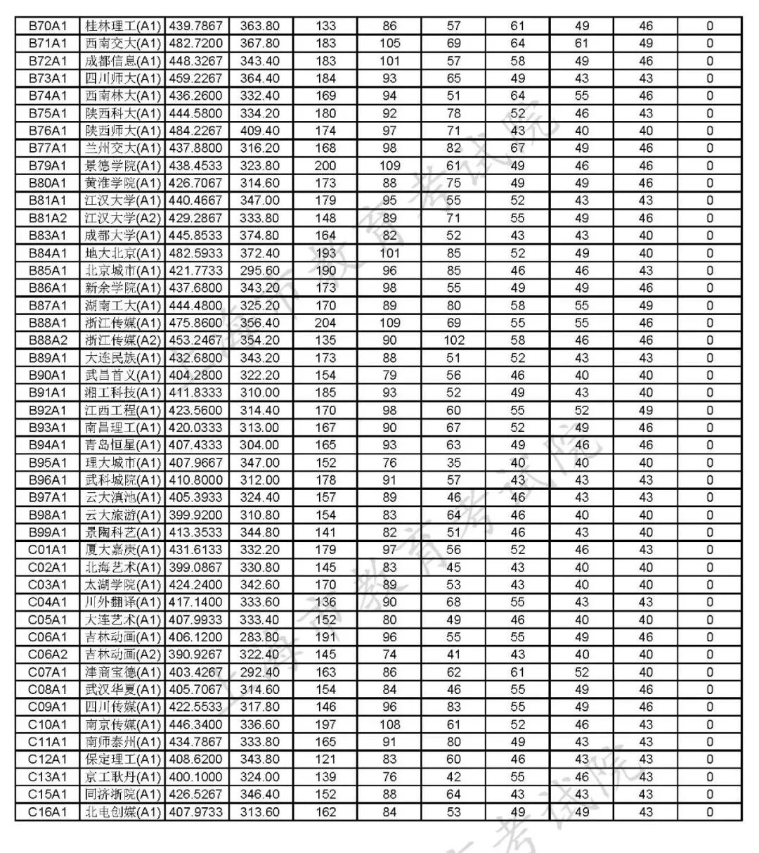 本科艺体类甲批次平行段院校专业组投档线公布: