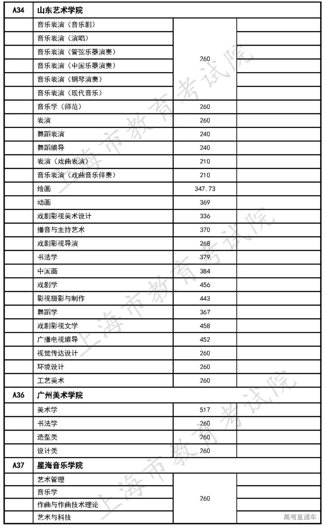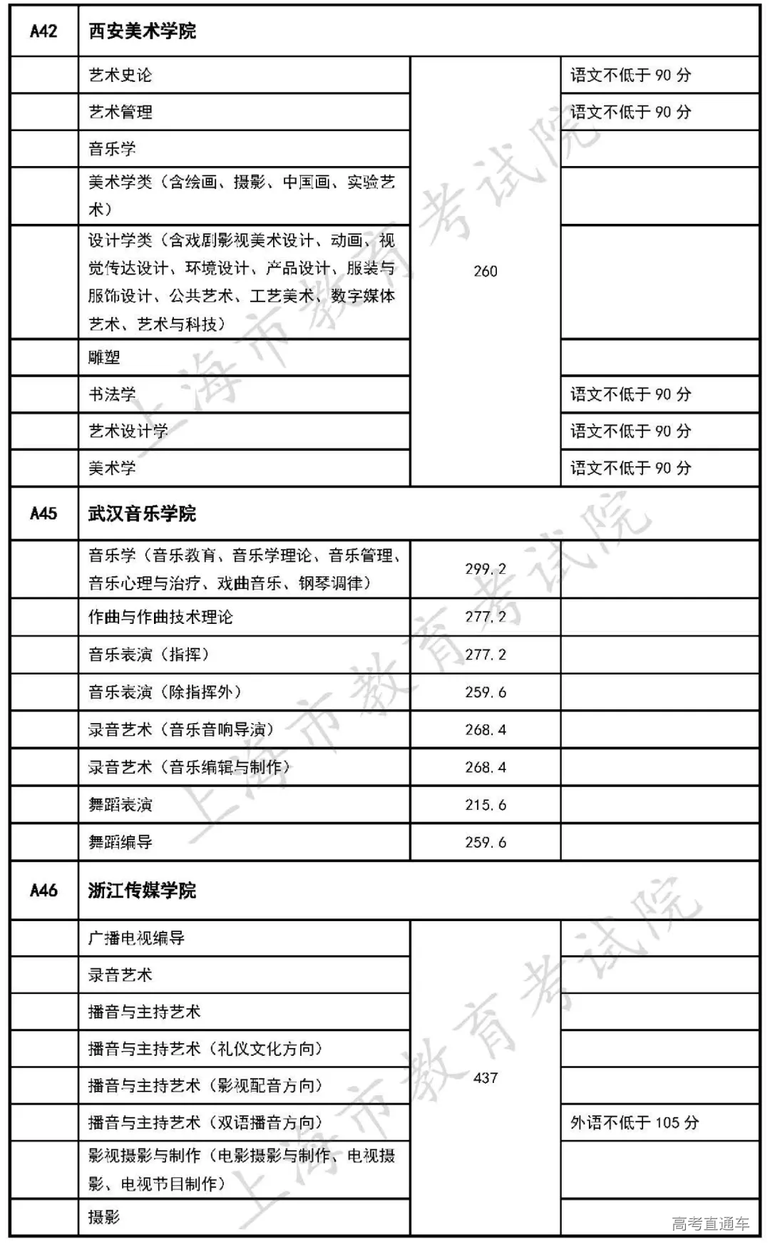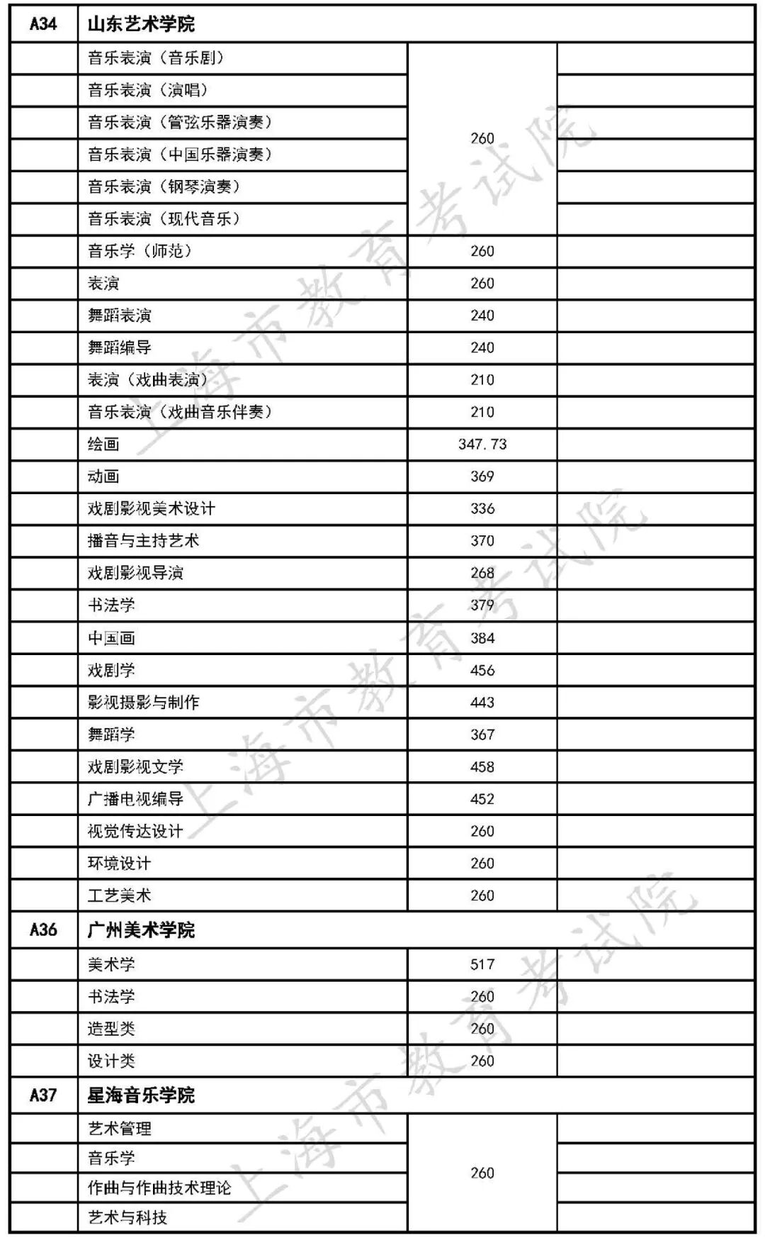 独立设置的艺术类本科院校自行划定录取分数线公布: