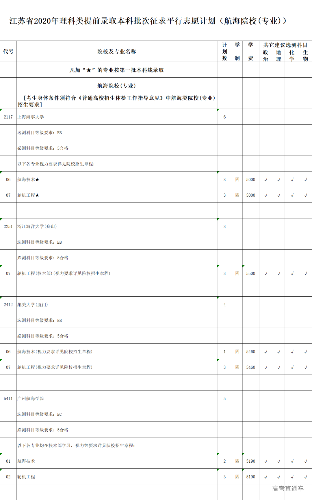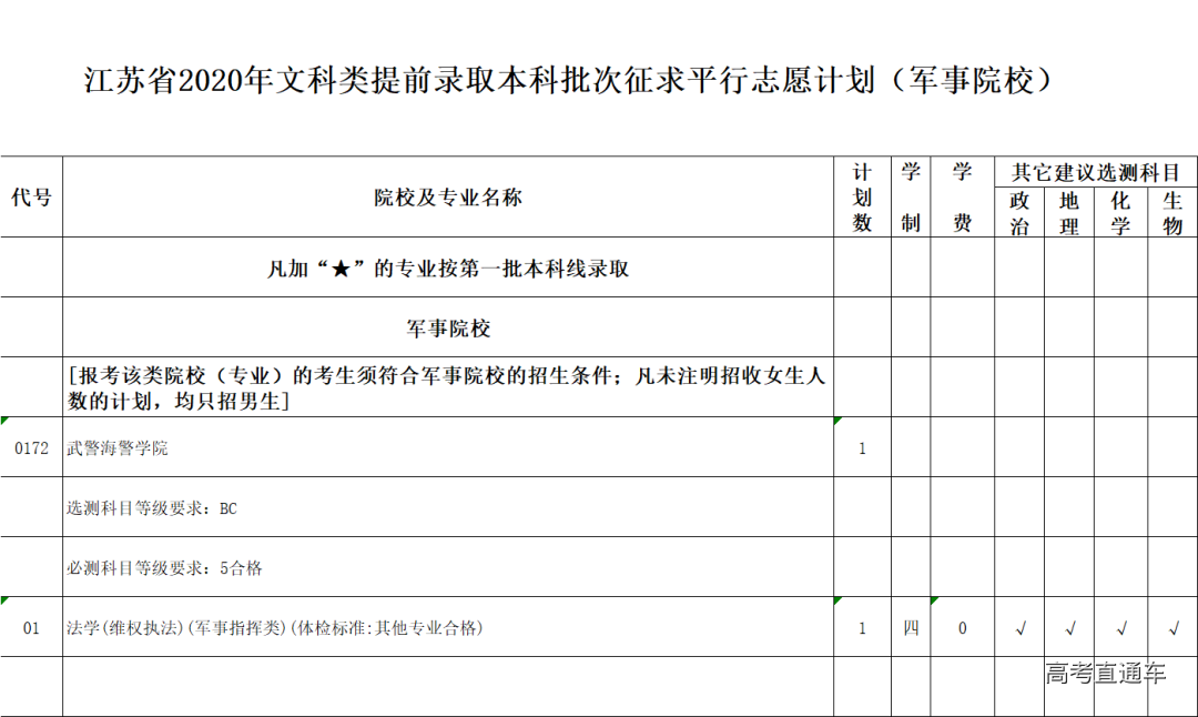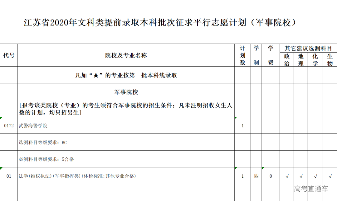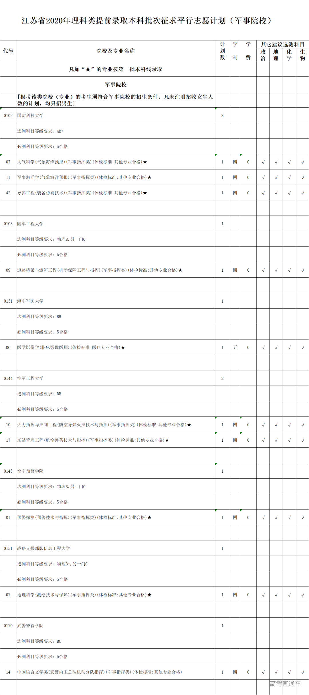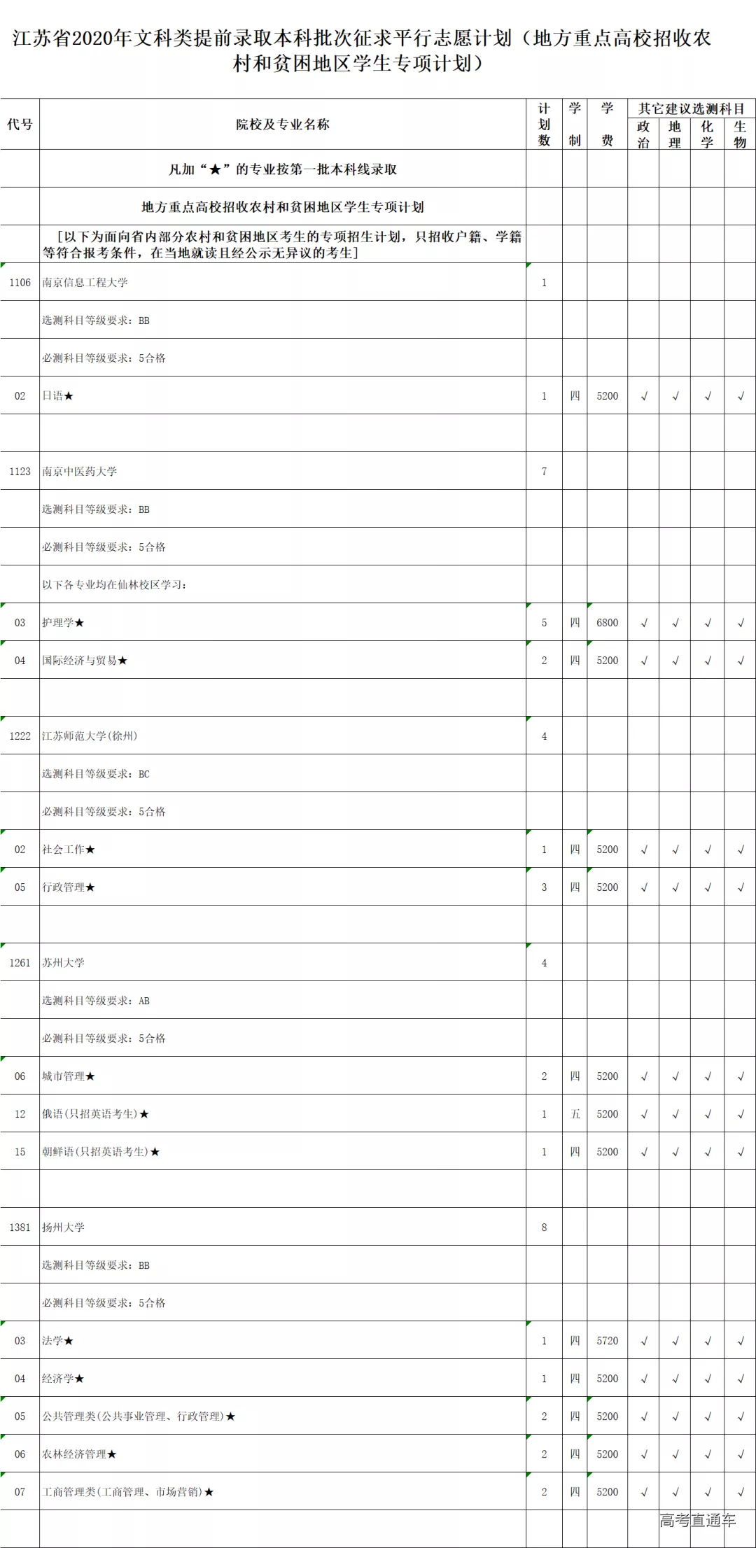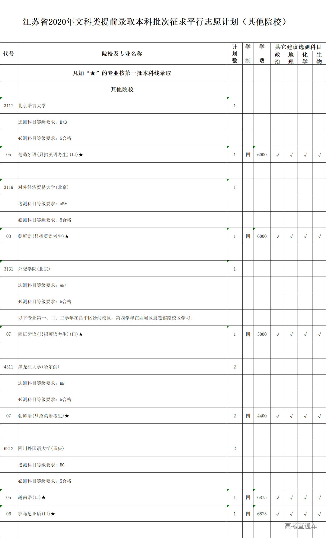 江苏省2020年文科类、理科类提前录取本科批次征求平行志愿计划具体如下: