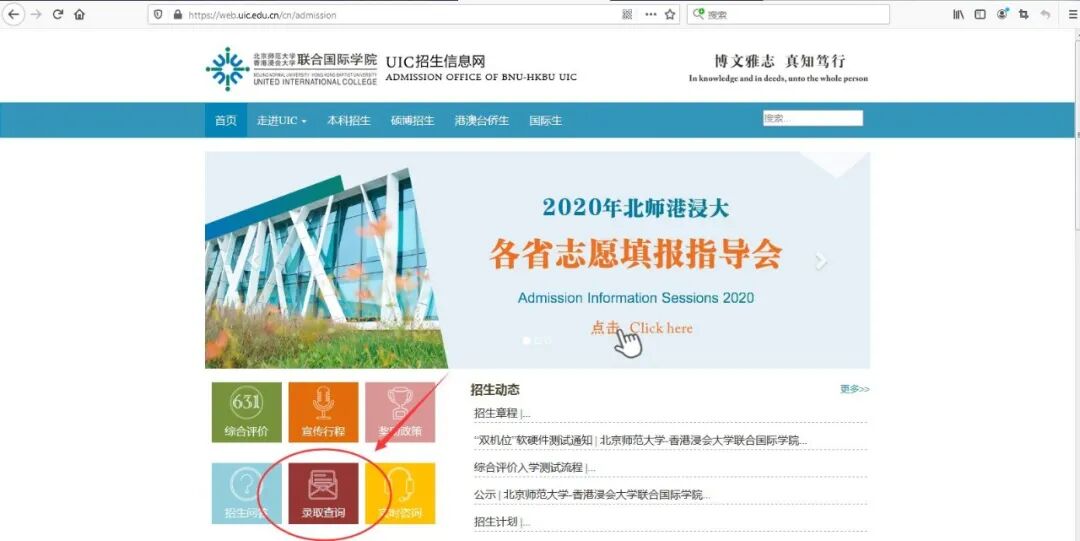 1、电脑浏览器打开北师港浸大招生信息网(http://www.uic.edu.hk/admission)