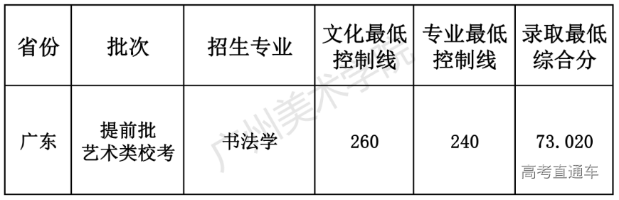 广州美术学院广东省提前批“艺术类校考”录取结束,现将录取情况公布如下:
