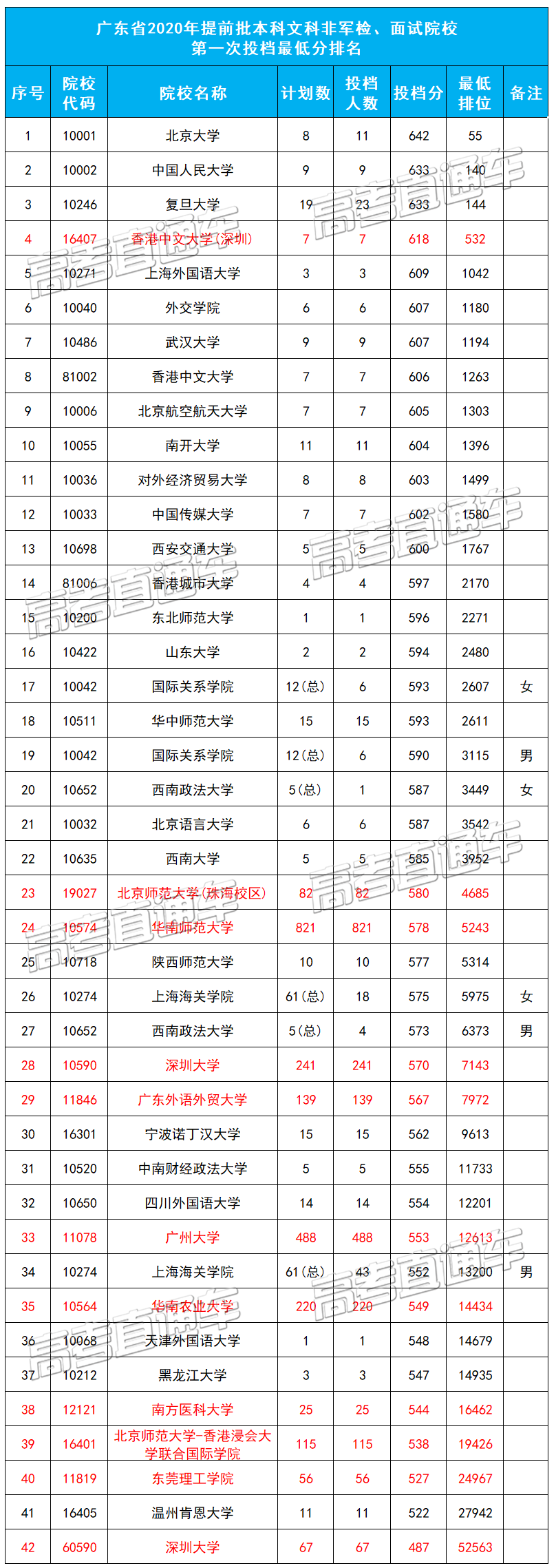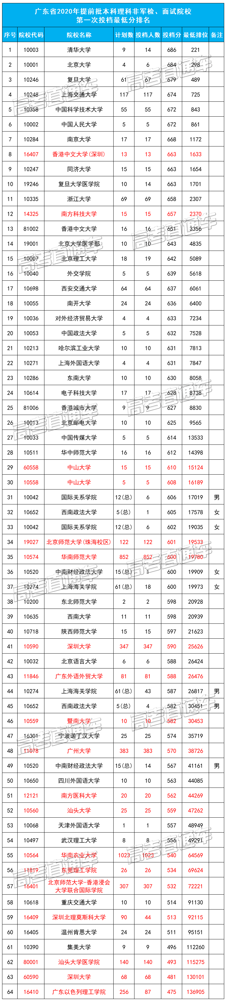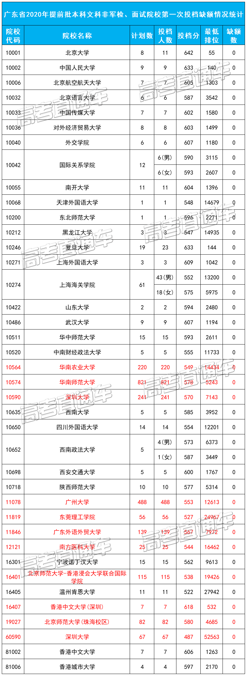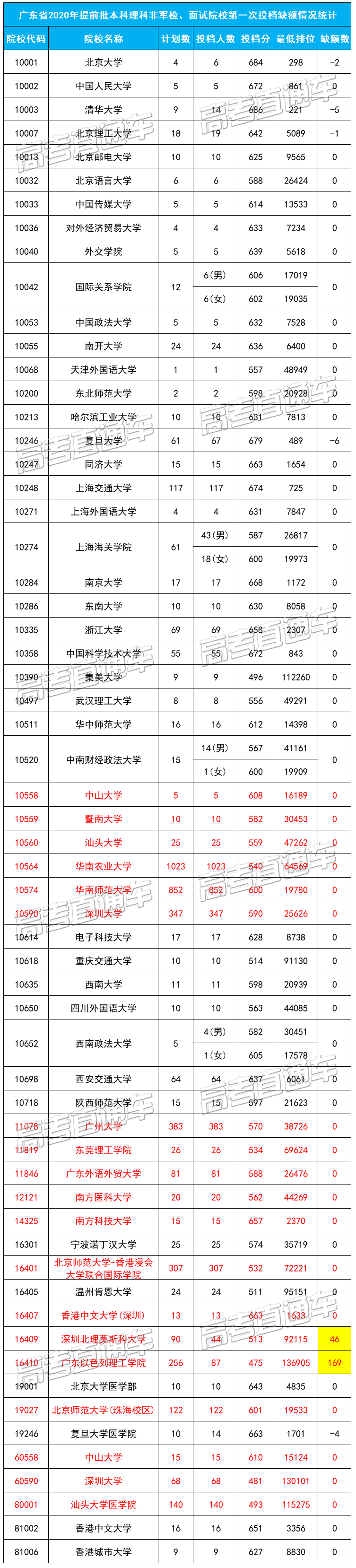 广东2020提前批本科最有可能补录的非军检、面试院校