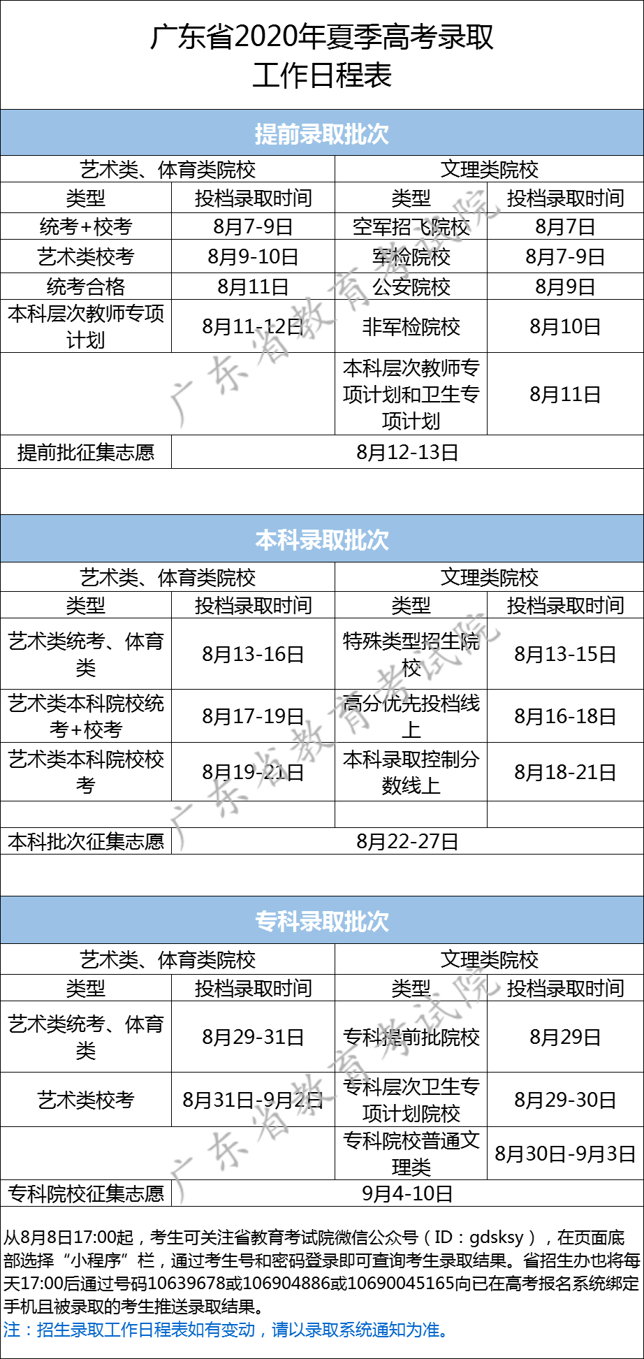 2020年广东高考录取工作正在有序进行中,什么时候有录取结果?如何不错过征集志愿的填报?高考直通车为正在等待录取结果的你整理了一份简要版的录取时间日程表,快快收藏好!