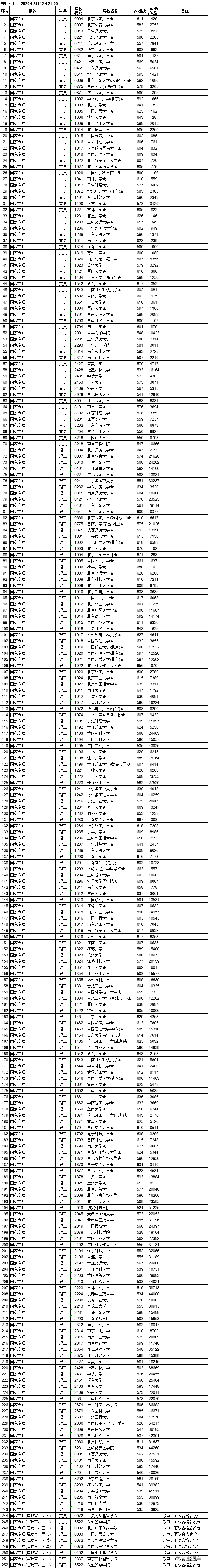 参加国家专项计划本科批次录取的文史类院校共有70所,全部投档满额,投档分靠前的院校是: