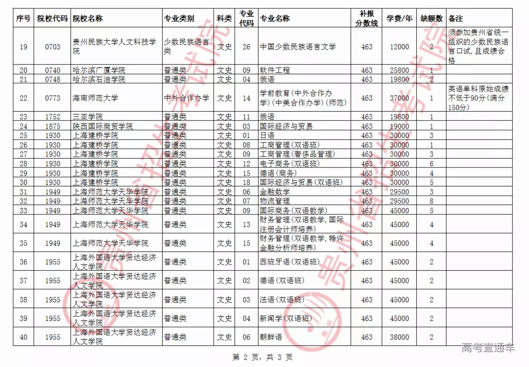 二、考生补报时请仔细查阅《贵州省2020年高考高校招生专业目录》和院校招生章程了解各院校招生专业的特殊要求。