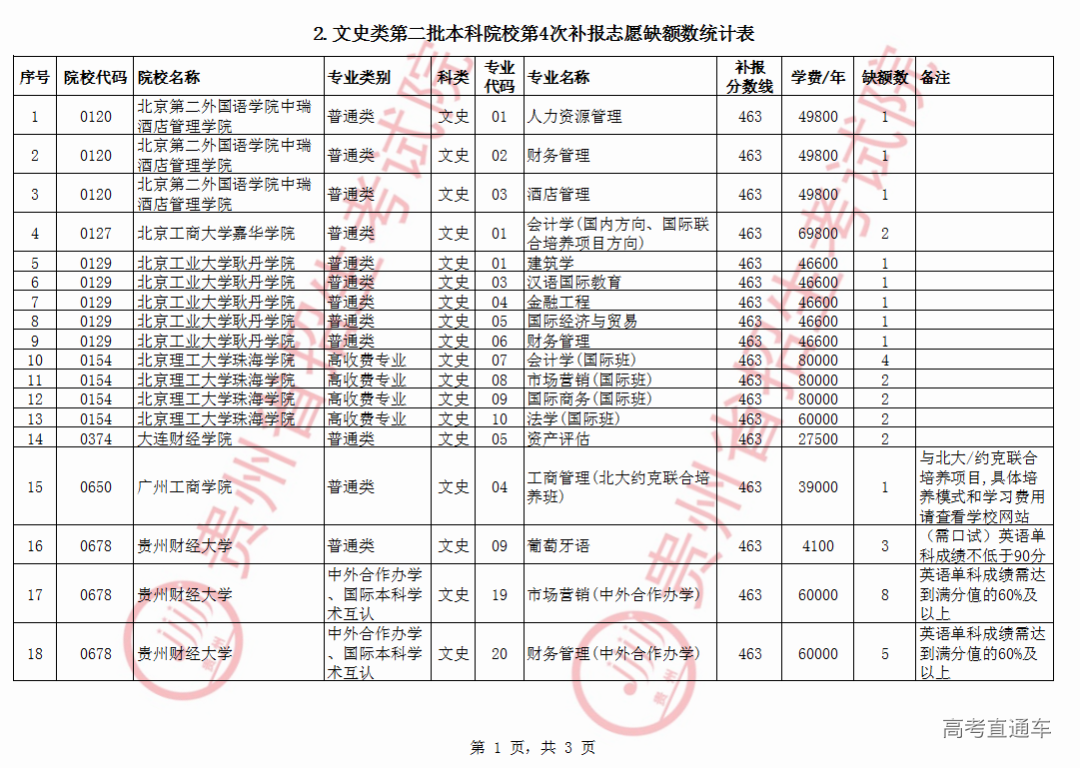 2.文史类第二批本科院校第4次补报缺额数统计表