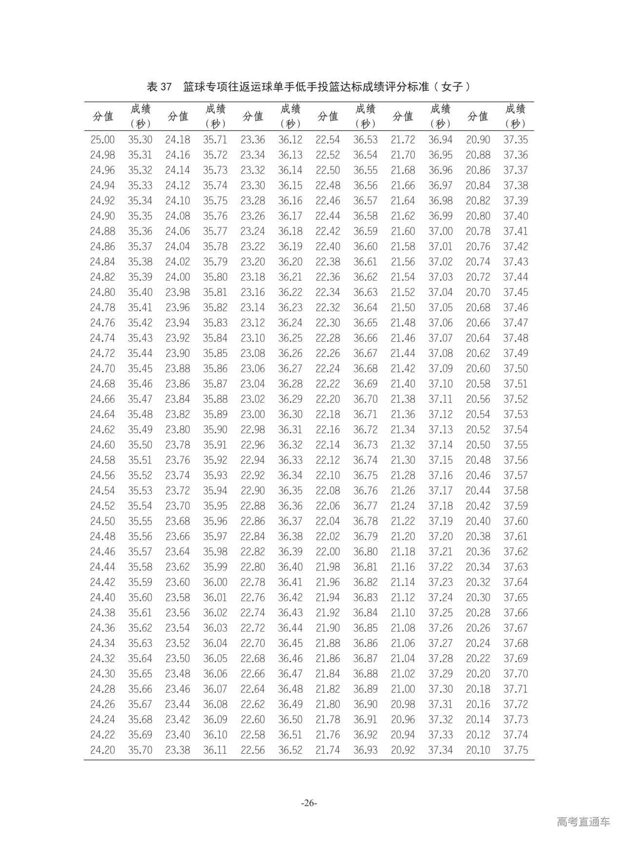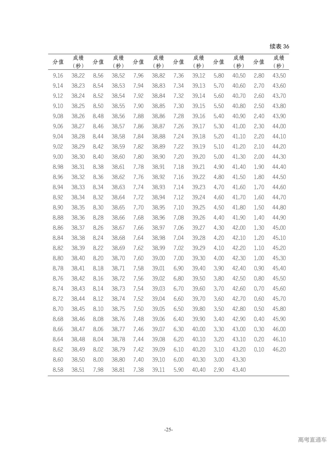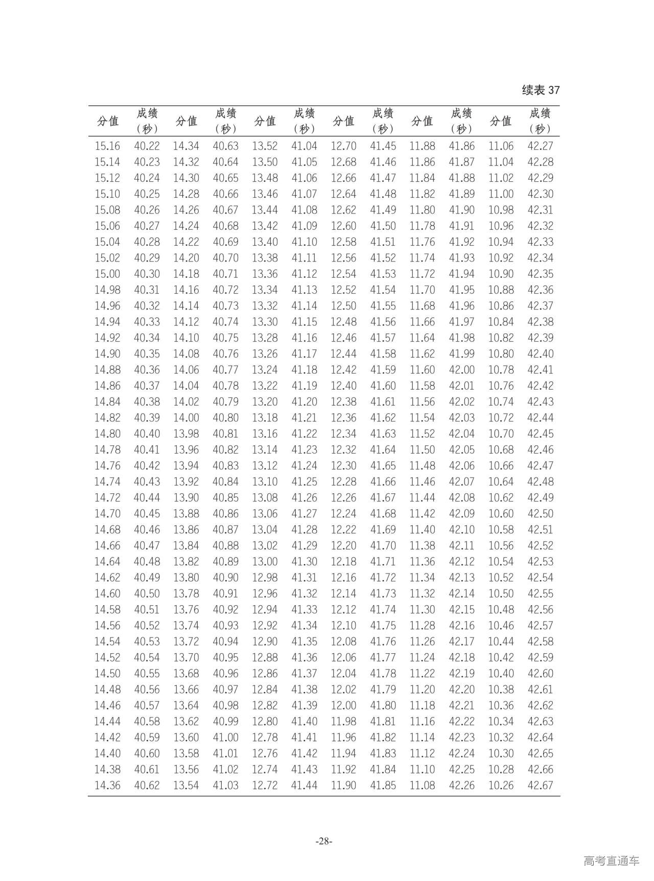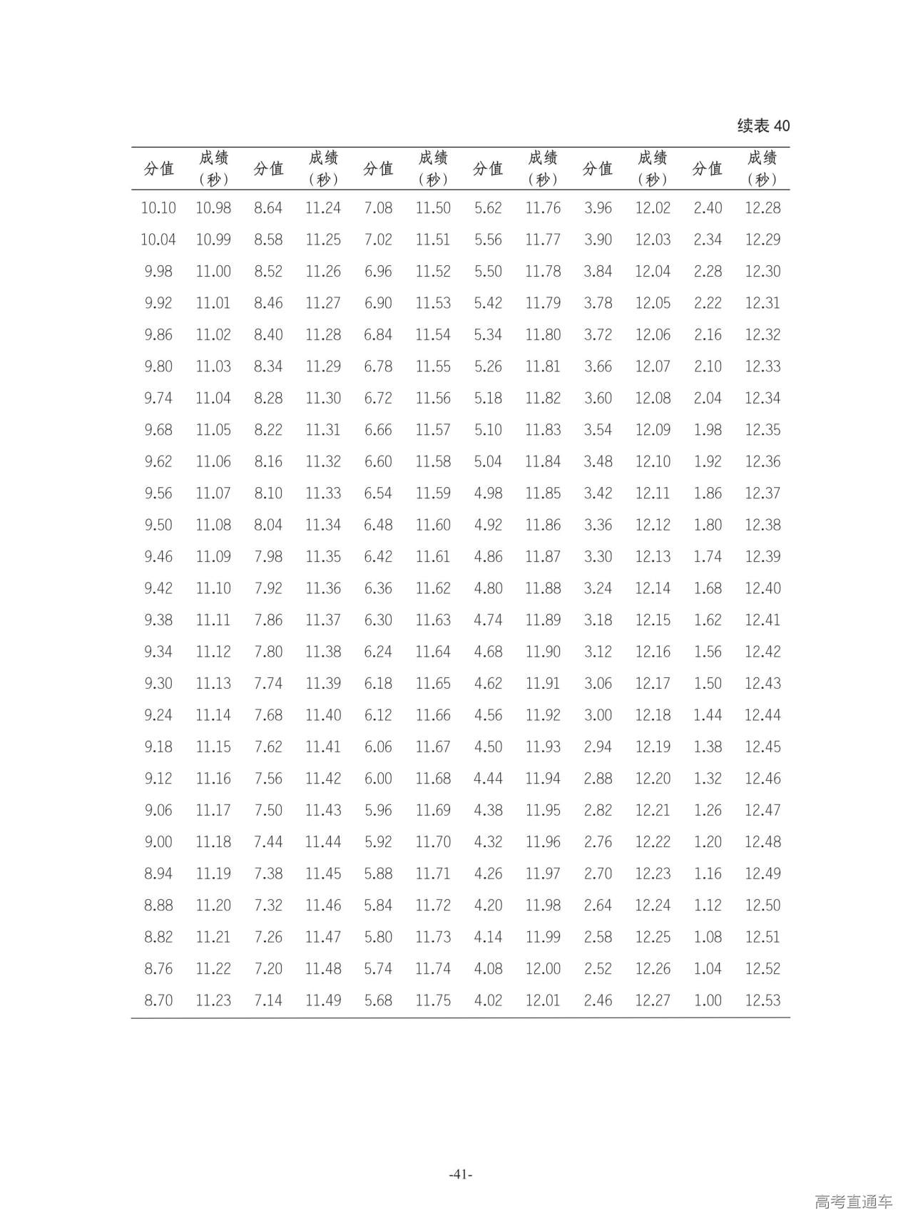2.湖南省普通高校招生体育类专业统一考试部分科目成绩评分和分值对应表(2026版)(点击查询)