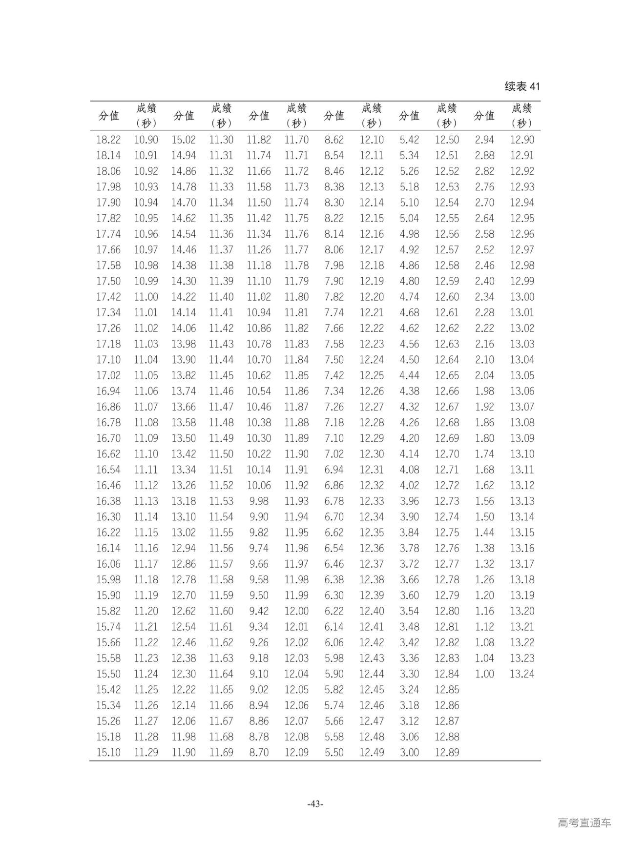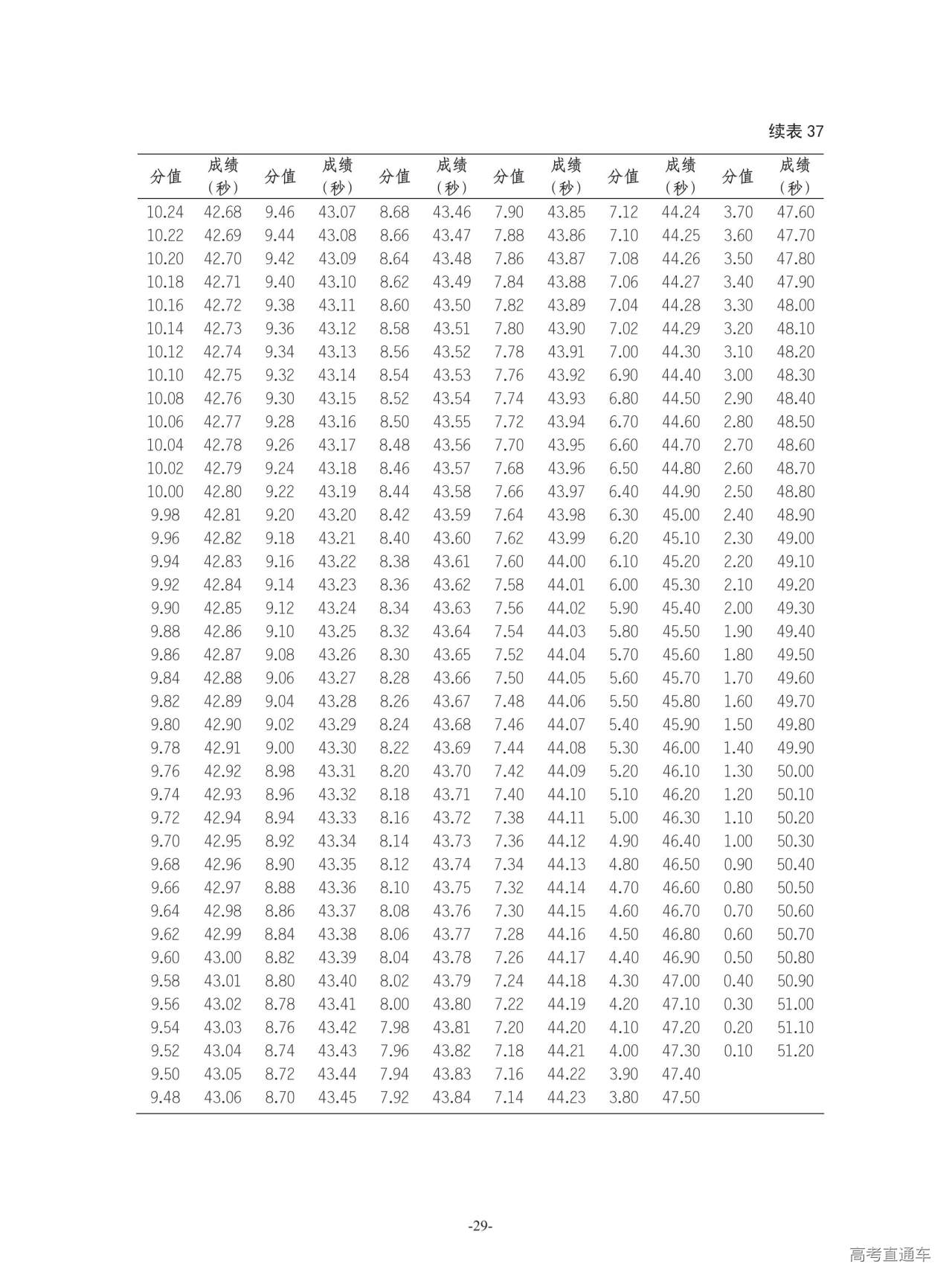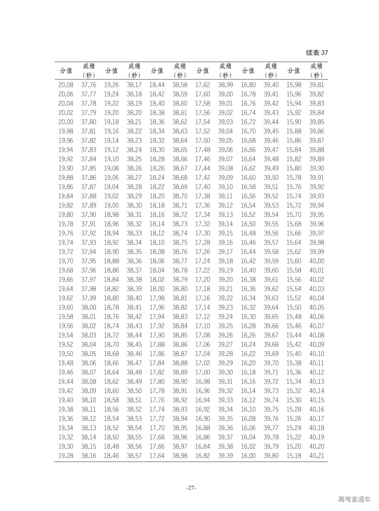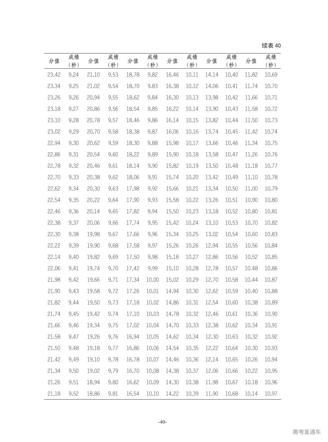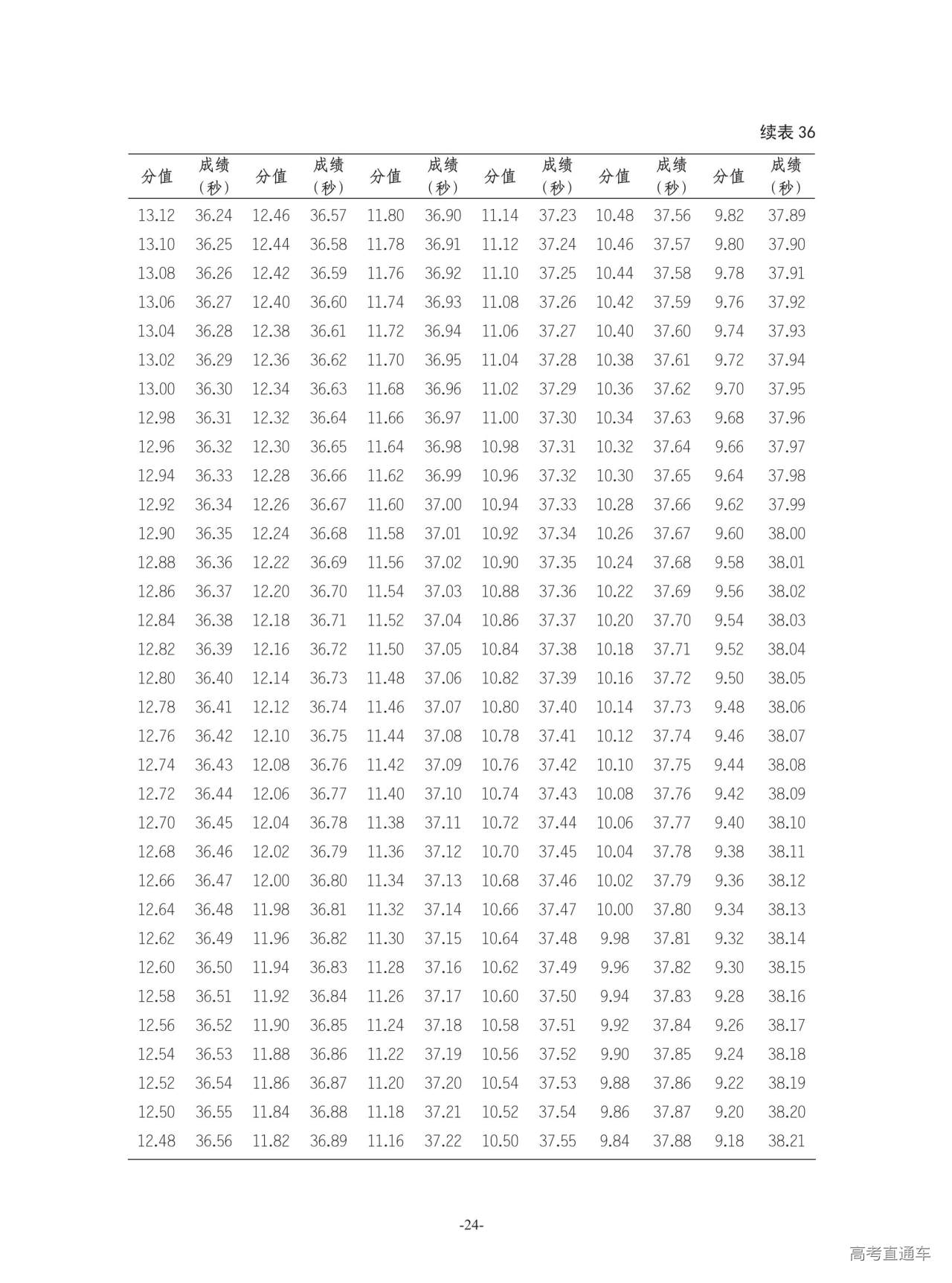 2.湖南省普通高校招生体育类专业统一考试部分科目成绩评分和分值对应表(2026版)(点击查询)