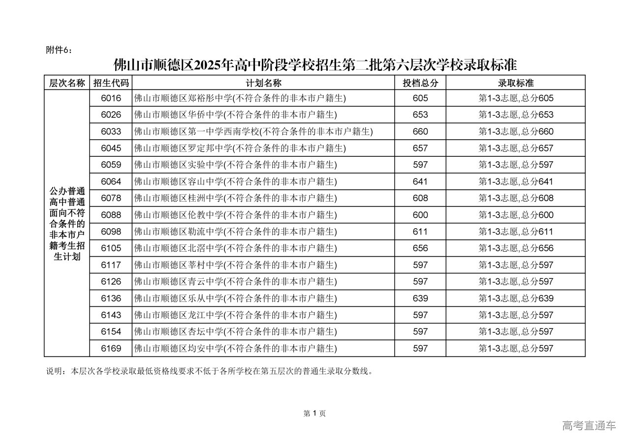 附件6:顺德区2025年高中阶段学校招生第二批第六层次学校录取标准.pdf