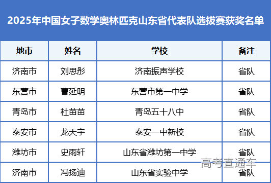 各省代表队最多由6名女同学和1名领队组成,此前山东、四川等省份都公示过女奥省队的名单。从女奥省队的入选情况来看,大部分同学都是来自竞赛强校。
