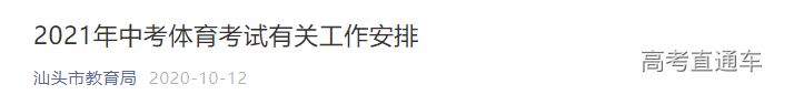 10月12日,汕头市教育局发布2021年汕头市中考体育考试有关工作安排,这也是省内首个发布2021年中考体育考试有关工作安排的地市。《通知》明确2021年汕头市中考体育考试中,男生1000米跑、女生800米为必考项目,立定跳远和投掷实心球为选考项目。一起来看看原文!
