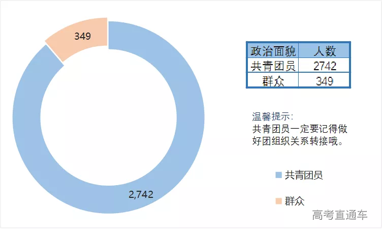 在经过高考录取工作后 共有3164位20级新生 加入了南方医的大家庭 共包含25个民族 来自31个省(市、自治区)与港澳台地区 56个民族56只花,56个兄弟姐妹是一家~~~ 来自广东省外的新生中 以浙江、陕西、河南人数最多 各位20级新生们要记得找到信任的同乡小伙伴哦!假期回家,结伴而行,更加方便安全! 生源中学 1308所不同的中学 在南医20级新生中 以下20所中学人数最多 男女比例 作为高校的传统比较项目 我校常年保持男女比例4:6 这一令理工科大学羡慕的好成绩 同样,今年也不例外 温馨提示:男女比例与脱单概率无关。 在各个学院中 护理学院女生占比最高 其次为外国语、卫生管理学院 最多姓名 陈、李、张、王、刘 五个姓氏霸据前五 被使用最多的名则是 悦、莹 而周越、王一帆两个名字 各有3人重名 万幸,他们并不在同一个专业 政治面貌 出生年月 在3164位新生中 最年轻的一位仅14周岁 大人,时代真的变了。 在9月12日与9月13日 共有22位新生迎来了自己的生日 在这里向他们表达真挚祝福 同一日生日人数最多的日子则为 3月1日与3月14日 各有14位新生将迎来生日 希望所有的同学都可以在南医大度过一个自己难以忘怀的生日!
