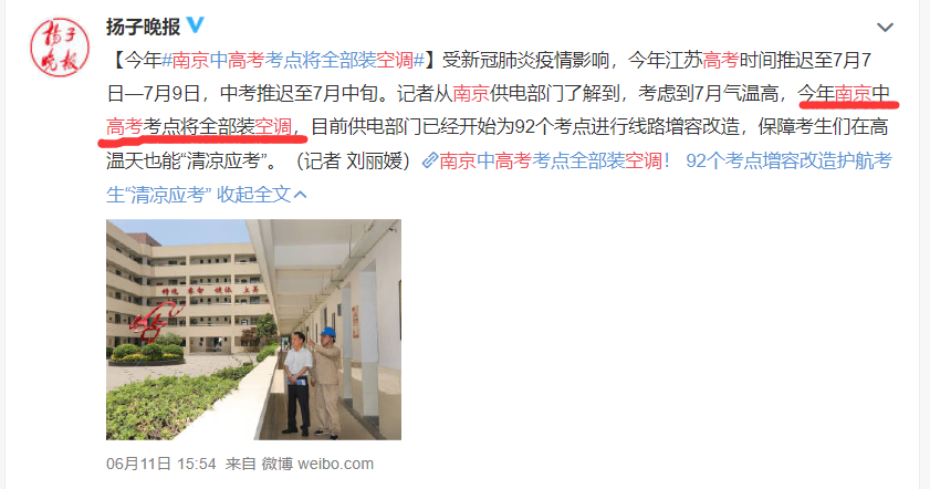 淮安:部分考场增设空调,争取6月25日之前完成增容