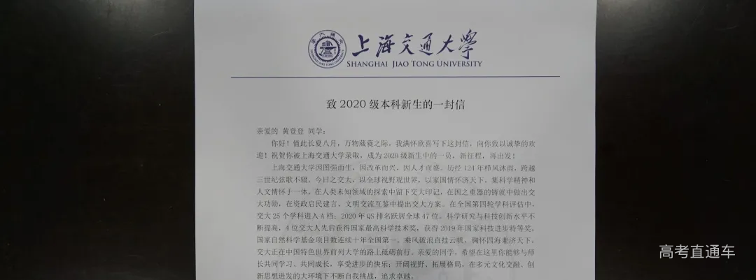 上海交通大学的录取通知书