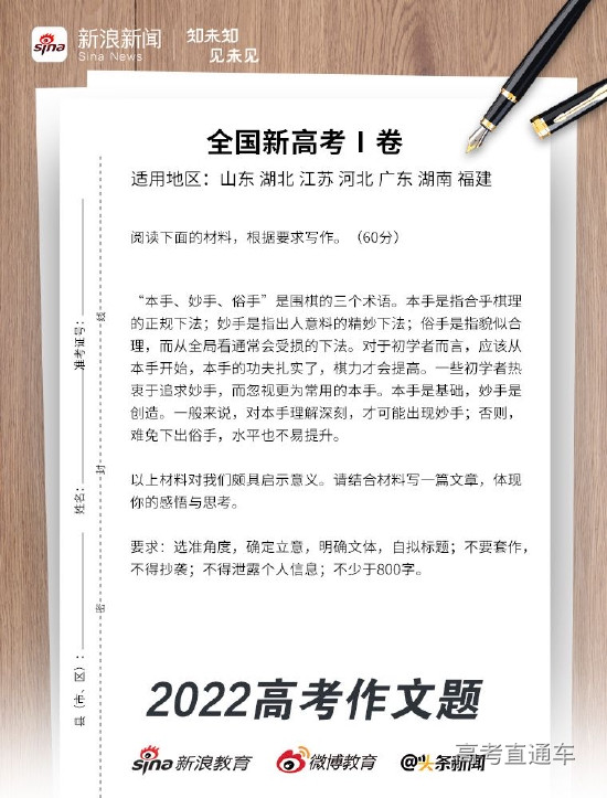 这一切的起源是全国新高考Ⅰ卷“本手、妙手、俗手”作文题在社交网络引发热议。